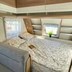 Trumatic, Pesuallas, Parivuode, Kasetti WC, Jääkaappi, Kattoluukku, Kerrossänky, Kasettiverhot, Markiisi, Liesi, Tukijalat, Pakastelokero, liesituuletin, Bluetooth, Sähköpatruuna