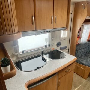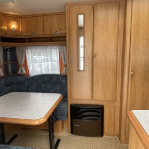 Erillisvuoteet, Jääkaappi, Kasetti WC, Kasettiverhot, Kattokaiteet/tikkaat, Kattoluukku, Lattiamatot asunto-osassa, Liesi, Lämminvesiboileri, Markiisi, Pakastelokero, Pesuallas, Sähköpatruuna, Trumatic, Tukijalat, kwh-mittari, sähkön ulosotto