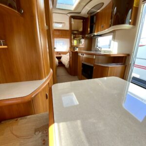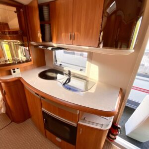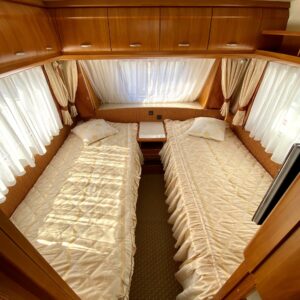 Alde, Erillisvuoteet, Jääkaappi, Kaasu-uuni, Kasetti WC, Kasettiverhot, Kattoluukku, Liesi, Lämminvesiboileri, Pakastelokero, Pesuallas, Suihku, Sähköpatruuna, TV-antenni tai lautasantenni, Tukijalat