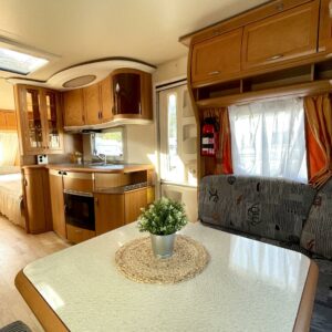 Alde, CD-soitin, Erillisvuoteet, Jääkaappi, Kasetti WC, Kasettiverhot, Kattoluukku, Lattialämmitys, Liesi, Lämminvesiboileri, Nestekiertolämmitys, Pakastelokero, Pesuallas, Pyöräteline, Sähköpatruuna, TV-antenni tai lautasantenni, Tukijalat, Lattialämmitys (sähkö), kwh-mittari, liesituuletin, sähkön ulosotto, Asuinosan hyttysovi/verho, Kaasu-uuni