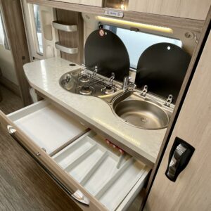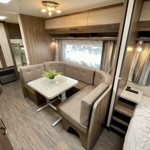 Truma, CD-soitin, Jääkaappi, Kasetti WC, Kasettiverhot, Kattoluukku, Kerrossänky, Liesi, Lämminvesiboileri, Markiisi, Pakastelokero, Parivuode, Pesuallas, Suihku, TV-antenni tai lautasantenni, Tukijalat, jenkkijääkaappi, liesituuletin, televisio, Asuinosan hyttysovi/verho