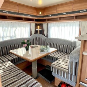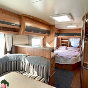 Alde, Jääkaappi, Kasetti WC, Kattoluukku, Liesi, Lattialämmitys, Nestekiertolämmitys, Pakastelokero, Parivuode, Markiisi, Pesuallas, Suihku, Sähköpatruuna, Lämminvesiboileri, Kasettiverhot, Tukijalat, Lattialämmitys (sähkö), jenkkijääkaappi, sähkön ulosotto, Asuinosan hyttysovi/verho, Pyöräteline, kwh-mittari