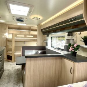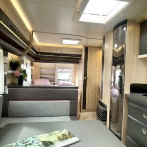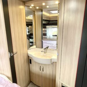 Ilmastointi: Automaattinen, Jääkaappi, Kasetti WC, Kasettiverhot, Kattoluukku, Kerrossänky, Lattialämmitys, Liesi, Lämminvesiboileri, Markiisi, Pakastelokero, Parivuode, Pesuallas, Suihku, Sähköpatruuna, Tukijalat, Trumatic