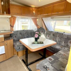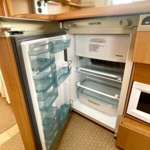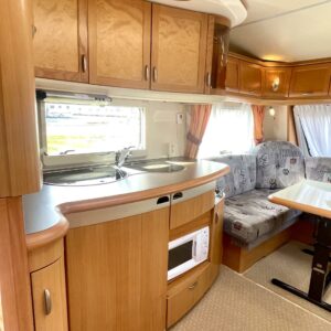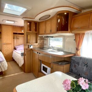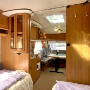 Alde, Erillisvuoteet, Jääkaappi, Kasetti WC, Kattoluukku, Lattialämmitys, Liesi, Lämminvesiboileri, Mikroaaltouuni, Nestekiertolämmitys, Pesuallas, Suihku, Sähköpatruuna, TV-antenni tai lautasantenni, Tukijalat