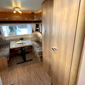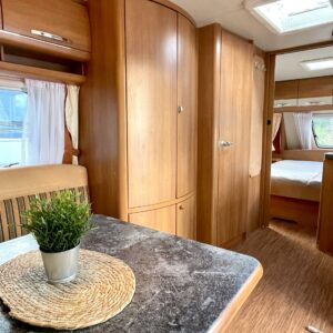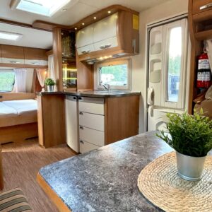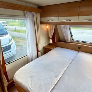 Alde, Jääkaappi, Kasetti WC, Kasettiverhot, Kattoluukku, Lattialämmitys, Liesi, Lämminvesiboileri, Nestekiertolämmitys, Pakastelokero, Parivuode, Sähköpatruuna, TV-antenni tai lautasantenni, Tukijalat, Lattialämmitys (sähkö), kwh-mittari, sähkön ulosotto, Asuinosan hyttysovi/verho