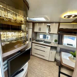 Alde, Jääkaappi, Kasetti WC, Kasettiverhot, Kattoluukku, Lattialämmitys, Liesi, Lämminvesiboileri, Nestekiertolämmitys, Pakastelokero, Parivuode, Pesuallas, Sähköpatruuna, TV-antenni tai lautasantenni, Tukijalat, Lattialämmitys (sähkö), kwh-mittari, jenkkijääkaappi, sähkön ulosotto, televisioteline, Asuinosan hyttysovi/verho