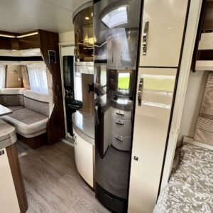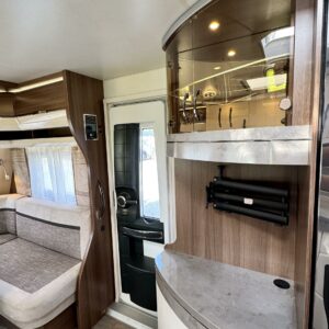 Alde, Jääkaappi, Kasetti WC, Kasettiverhot, Kattoluukku, Lattialämmitys, Liesi, Markiisi, Nestekiertolämmitys, Pakastelokero, Parivuode, Suihku, Sähköpatruuna, TV-antenni tai lautasantenni, Tukijalat