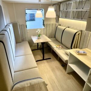 Jääkaappi, Kattoluukku, Parivuode, Pesuallas, Tukijalat, 2000W lämmitin, AirFryer
