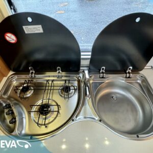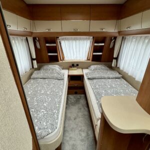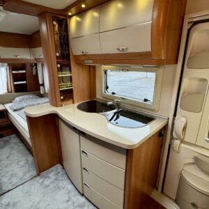 Jääkaappi, Kasetti WC, Kasettiverhot, Kattoluukku, Keskuslämmitys, Lattialämmitys, Lattiamatot asunto-osassa, Liesi, Lämminvesiboileri, Markiisi, Pakastelokero, Pesuallas, Sähköpatruuna, Trumatic, Tukijalat, TV-antenni/lautasantenni, sähkön ulosotto, kaasun ulosotto, Polkupyöräteline