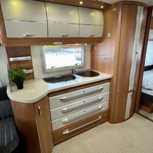 Alde, Jääkaappi, Kasetti WC, Kasettiverhot, Lämminvesiboileri, Liesi, Lattialämmitys, Kattoluukku, Nestekiertolämmitys, Pakastelokero, Pesuallas, Tukijalat, Sähköpatruuna, TV-antenni tai lautasantenni, Erillisvuoteet