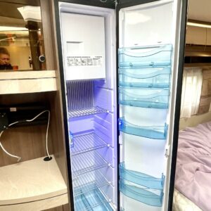 Alde, Jääkaappi, Kasetti WC, Kasettiverhot, Kattoluukku, Lattiamatot asunto-osassa, Liesi, Lämminvesiboileri, Mikroaaltouuni, Nestekiertolämmitys, Pakastelokero, Parivuode, Pesuallas, Suihku, Sähköpatruuna, Tukijalat, Lattialämmitys (sähkö), kwh-mittari, pullonvaihtaja, kaasun ulosotto, televisioteline