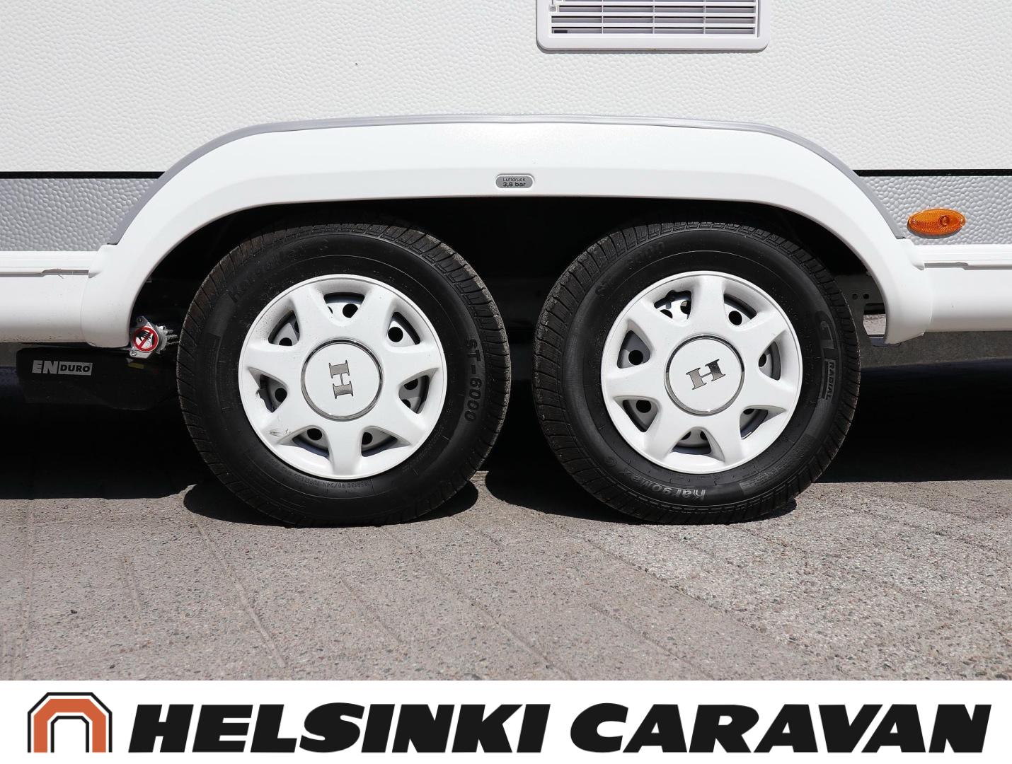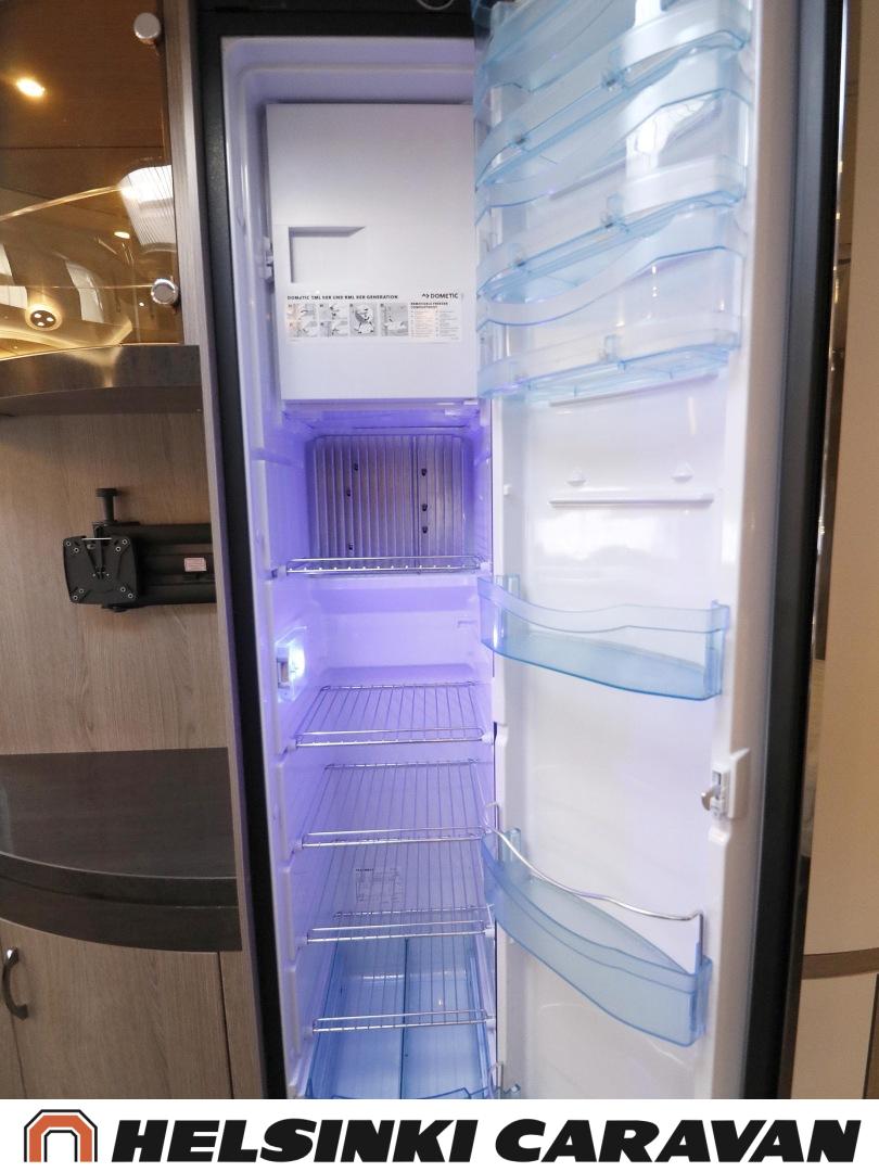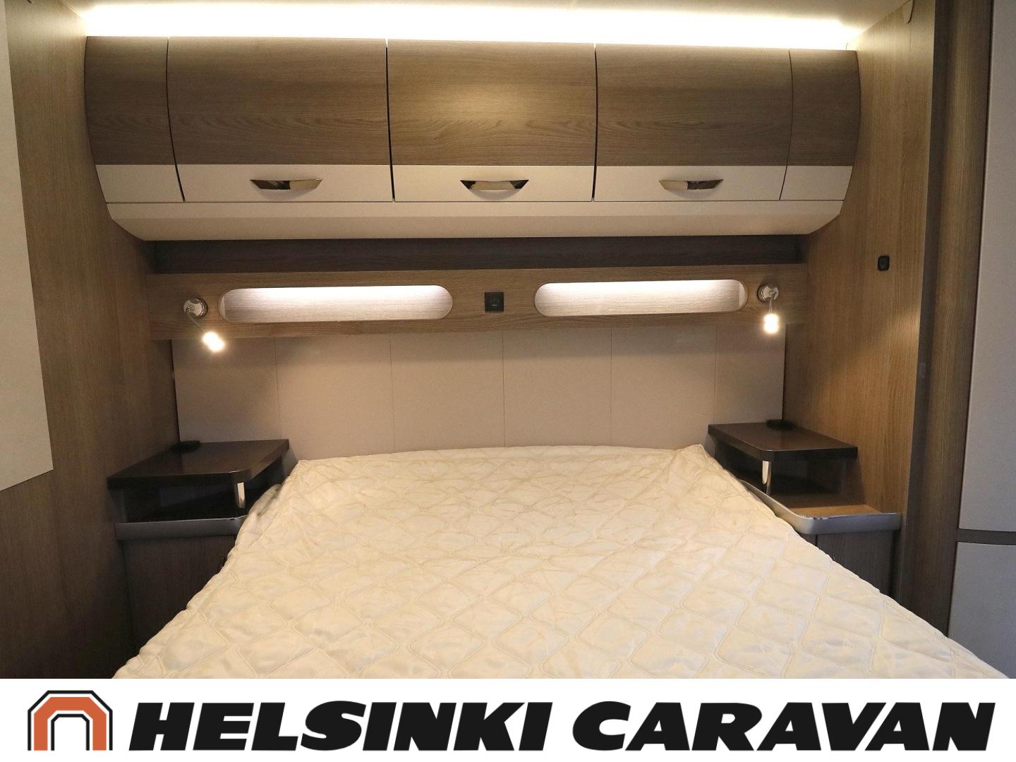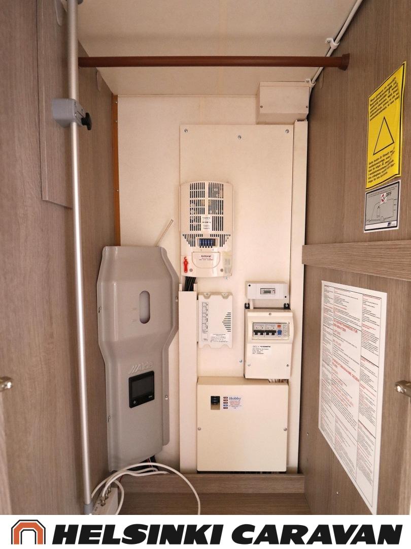 Alde, Ilmastointi: Automaattinen, Jääkaappi, Kaasu-uuni, Kasetti WC, Lattialämmitys, Mikroaaltouuni, Nestekiertolämmitys, Pakastelokero, Sähköpatruuna, Enduro-vaununsiirrin