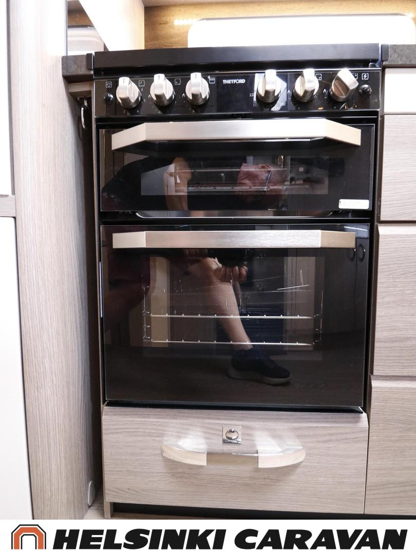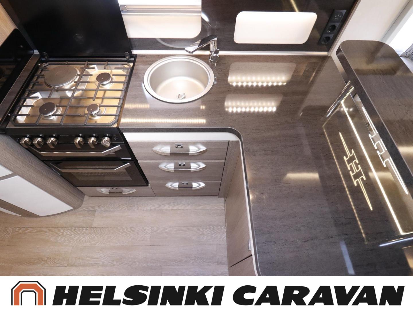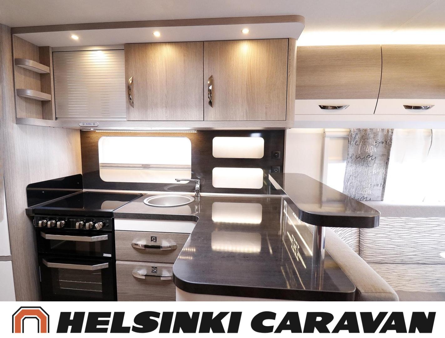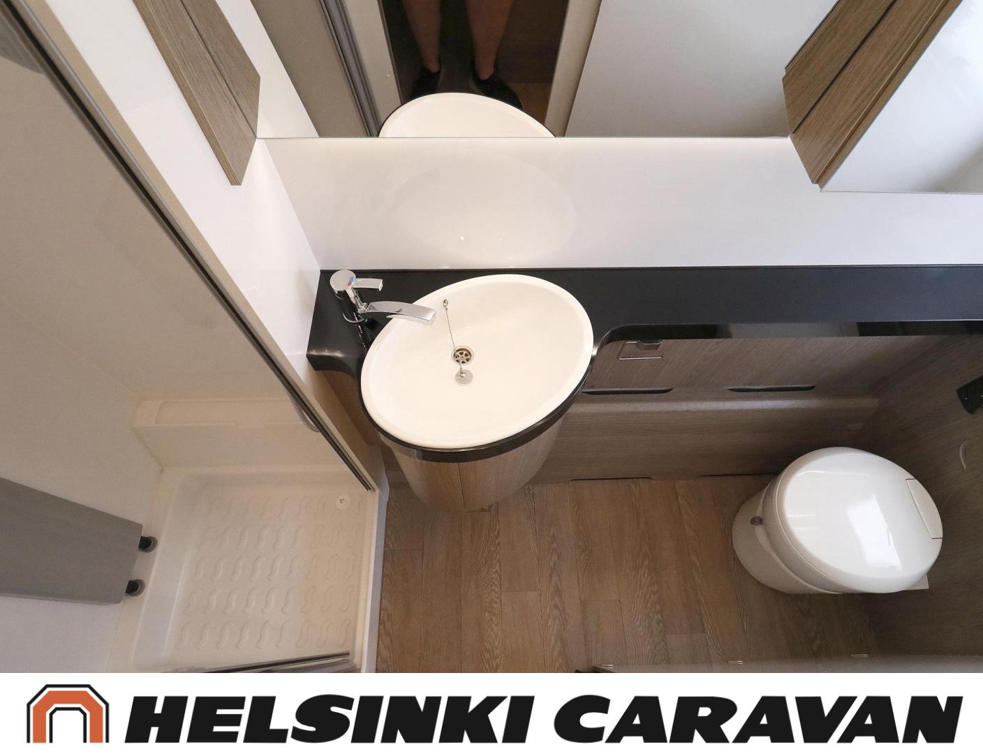 Alde, Ilmastointi: Automaattinen, Jääkaappi, Kaasu-uuni, Kasetti WC, Lattialämmitys, Mikroaaltouuni, Nestekiertolämmitys, Pakastelokero, Sähköpatruuna, Enduro-vaununsiirrin