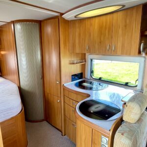 Ajotietokone, Ilmastointi ajotilassa, Jääkaappi, Kaasu-uuni, Kasetti WC, Kasettiverhot, Kattoluukku, Keskuslämmitys, Lattiamatot asunto-osassa, Liesi, Lämminvesiboileri, Markiisi, Ohjaustehostin, Pakastelokero, Parivuode, Pesuallas, Radio, Suihku, Sähkökäyttöiset ikkunat, Sähköpatruuna, Sähköpeilit, Vetokoukku, Sähkörappu, Trumatic, Turbo