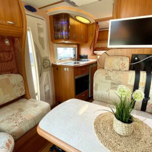 ABS-jarrut, Airbag, Huoltokirja, Ilmastointi ajotilassa, Jääkaappi, Kaasu-uuni, Kahdet renkaat, Kasetti WC, Kasettiverhot, Keskuslukitus: Kaukosäätöinen, Käynnistyksenesto, Liesi, Lämminvesiboileri, Ohjaustehostin, Pakastelokero, Parivuode, Pesuallas, Polttoainekäyttöinen lisälämmitin, Radio, TV-antenni tai lautasantenni, Trumatic, Turbo, Vakionopeudensäädin, Sähkörappu, Ilmastointi (asuintila)