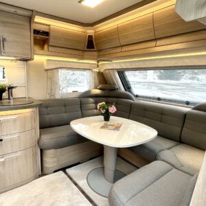 Alde, CD-soitin, Erillisvuoteet, Ilmastointi: Automaattinen, Jääkaappi, Kasetti WC, Kattoluukku, Lattialämmitys, Lämminvesiboileri, Markiisi, Mikroaaltouuni, Nestekiertolämmitys, Pakastelokero, Radio, Sähköpatruuna, USB, TV-antenni tai lautasantenni, Erikoisvanteet, Kasettiverhot, Liesi, Pesuallas, Tukijalat, Lattialämmitys (nestekierto), Ilmastointi (asuintila), kwh-mittari, Eristetty harmaavesisäiliö, harmaavesisäiliön lämmitys, jenkkijääkaappi, liesituuletin, kaasun ulosotto, sähkön ulosotto, Asuinosan hyttysovi/verho, Aurinkopaneeli