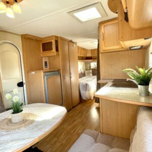 Alde, Erikoisvanteet, Erillisvuoteet, Jääkaappi, Kasetti WC, Kasettiverhot, Kattoluukku, Lattialämmitys, Liesi, Lämminvesiboileri, Markiisi, Mikroaaltouuni, Nestekiertolämmitys, Pakastelokero, Pesuallas, Sähköpatruuna, TV-antenni tai lautasantenni, Tukijalat, Lattialämmitys (nestekierto), kwh-mittari, harmaavesisäiliön lämmitys, kaasun ulosotto, sähkön ulosotto