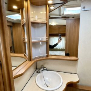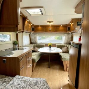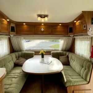 Kahdet renkaat, Tukijalat, Pesuallas, Pakastelokero, Mover- vaununsiirrin, Markiisi, Liesi, Kattoluukku, Kasettiverhot, Kasetti- WC, Jääkaappi, Alde- nestekiertoinen keskuslämmitys, Sähköpatruuna, Radio, Ilmastointi: Manuaalinen, kwh-mittari, Kasetti WC, Suihku, Parivuode, Lämminvesiboileri