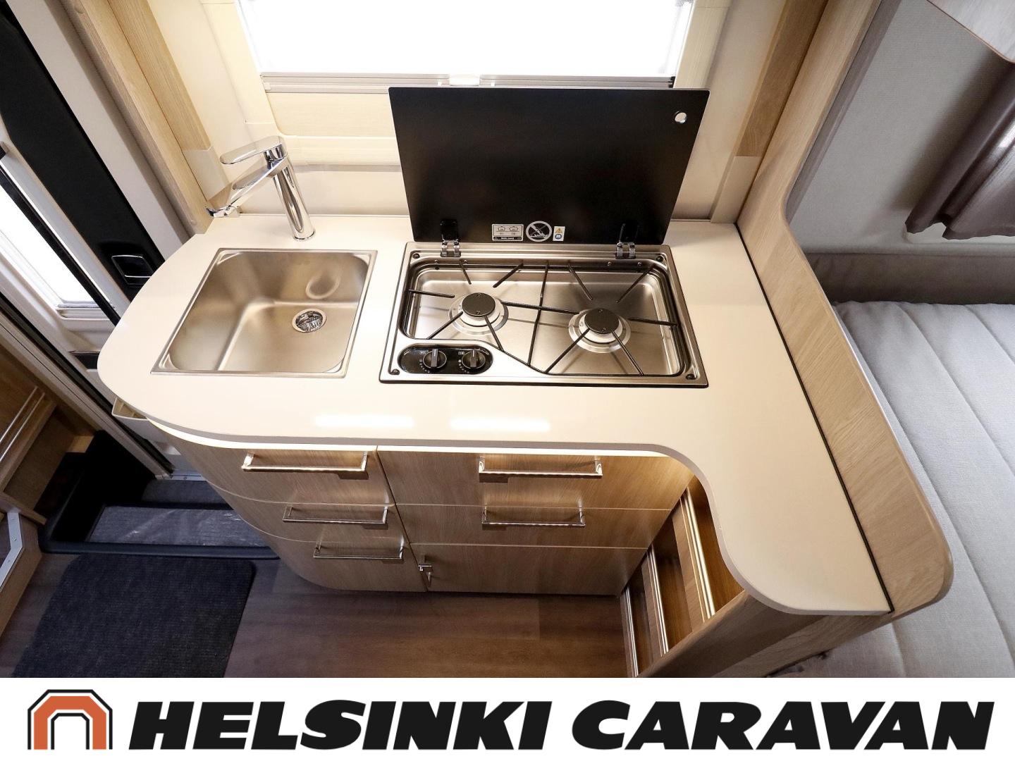 Ajonvakautusjärjestelmä, Ajotietokone, Alde, Alde lämmönvaihdin, Alde ohjaamon nestekiertoinen matto, Erillisvuoteet, Bluetooth, Eristetty harmaavesisäiliö, Ilmastointi ajotilassa, Jääkaappi, Kattoluukku, Keskuslukitus: Kaukosäätöinen, Kasettiverhot, Kasetti WC, Lämminvesiboileri, Lattialämmitys, Pakastelokero, Radio, Suihku, Sähköpatruuna, Sumuvalot, Sähkökäyttöiset ikkunat, Sähköpeilit, Vakionopeudensäädin, TV-antenni tai lautasantenni, Multimedialaite (sis. p-kamera, navi, soitin, bluetooth, handsfree)
