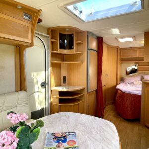 Alde, Erikoisvanteet, Kasettiverhot, Kasetti WC, Kaasu-uuni, Jääkaappi, Kattoluukku, Lattialämmitys, Liesi, Lämminvesiboileri, Markiisi, Pesuallas, Parivuode, Pakastelokero, Nestekiertolämmitys, Nahkasisusta, Suihku, Sähköpatruuna, TV-antenni tai lautasantenni, Tukijalat