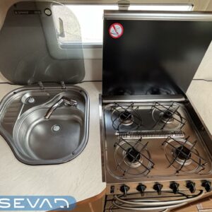 Alde, Lattialämmitys (nestekierto), kwh-mittari, liesituuletin, kaasun ulosotto, Kasettiverhot, Kasetti WC, Jääkaappi, Kaasu-uuni, Kattoluukku, Liesi, Nestekiertolämmitys, Tukijalat, Sähköpatruuna, Radio, Pakastelokero
