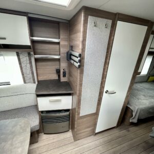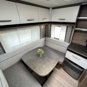 Truma, Sähköpatruuna, Erillisvuoteet, Jääkaappi, Kasetti WC, Kasettiverhot, Kattoluukku, Liesi, Lämminvesiboileri, Pakastelokero, Pesuallas, TV-antenni tai lautasantenni, Tukijalat, Asuinosan hyttysovi/verho, Lattialämmitys (sähkö)