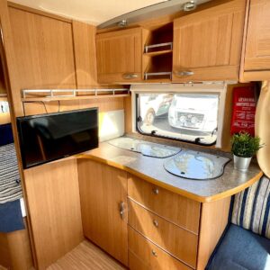 Sähköpatruuna, Alde, televisio, televisioteline, Jääkaappi, Kasetti WC, Kasettiverhot, Kattoluukku, Liesi, Lämminvesiboileri, Nestekiertolämmitys, Pakastelokero, Parivuode, Pesuallas, Suihku, TV-antenni tai lautasantenni, Tukijalat