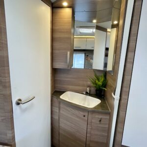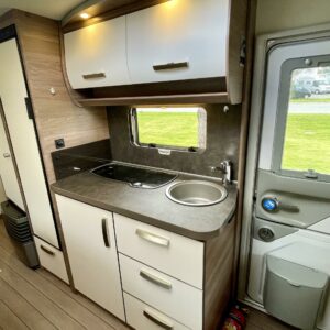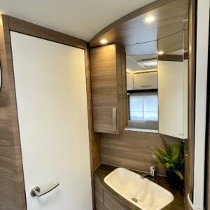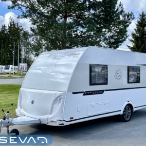 Jääkaappi, Kasetti WC, Kasettiverhot, Kattoluukku, Markiisi, Tukijalat, Liesi, Trumatic, Sähköpatruuna, Suihku, Pakastelokero, Parivuode, Pesuallas, Kerrossänky, Lämminvesiboileri