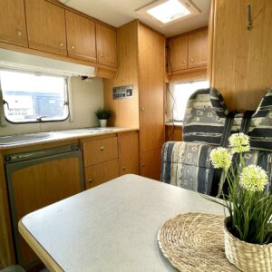 Truma, Jääkaappi, Kasetti WC, Kasettiverhot, Kattoluukku, Liesi, Lohkolämmitin, Lämminvesiboileri, Ohjaustehostin, Pakastelokero, Pesuallas, Radio, Sähkökäyttöiset ikkunat, Sähköpeilit, Turbo