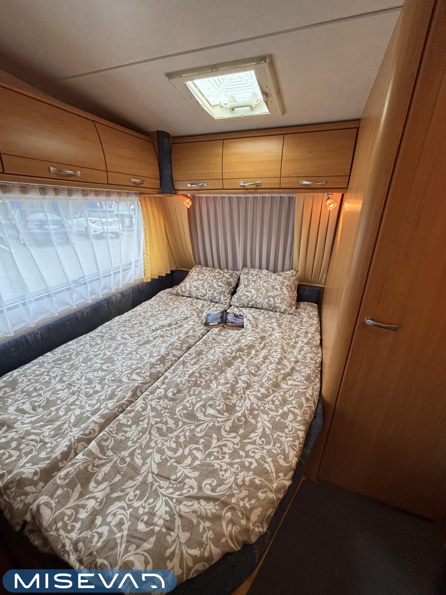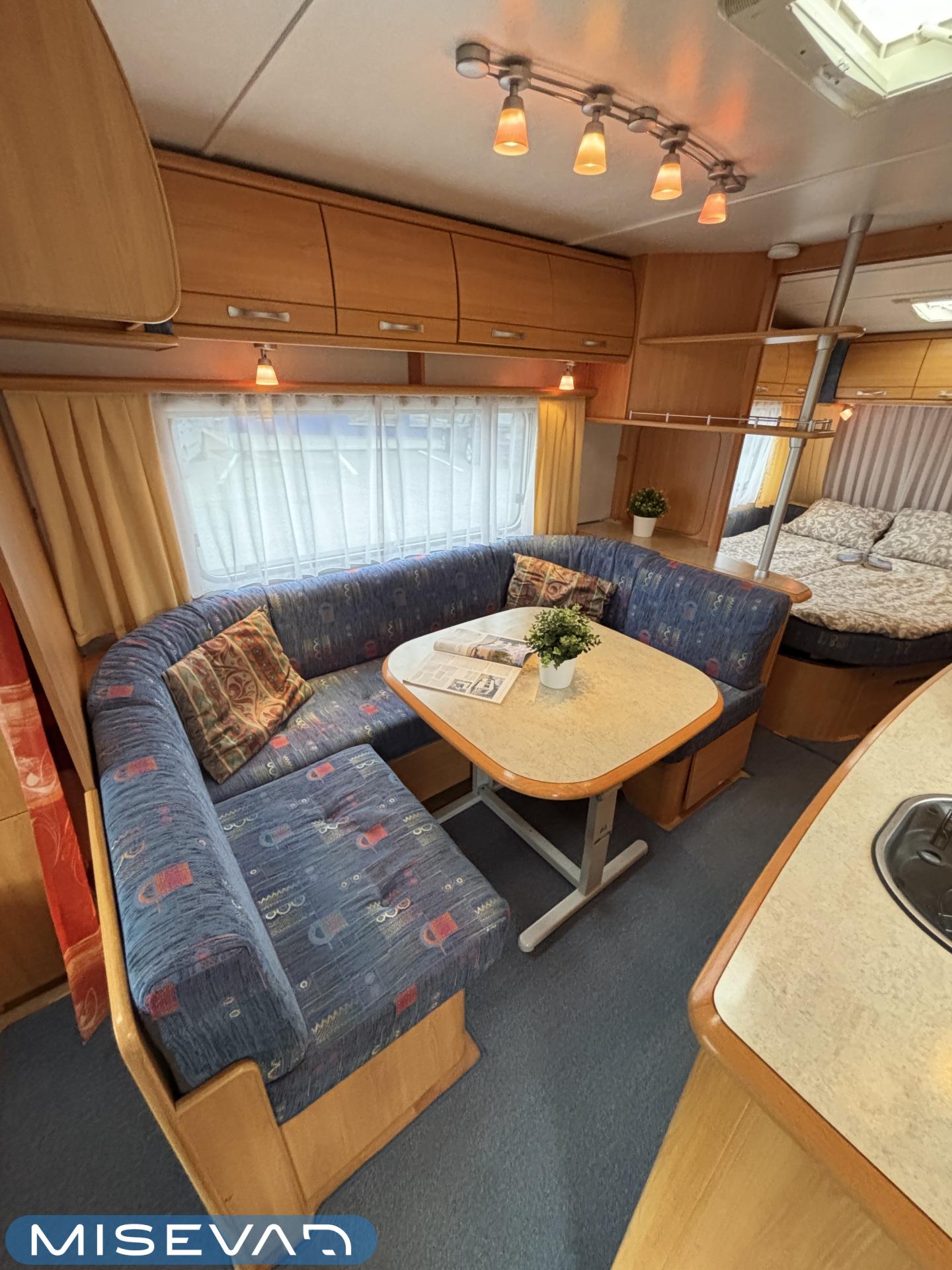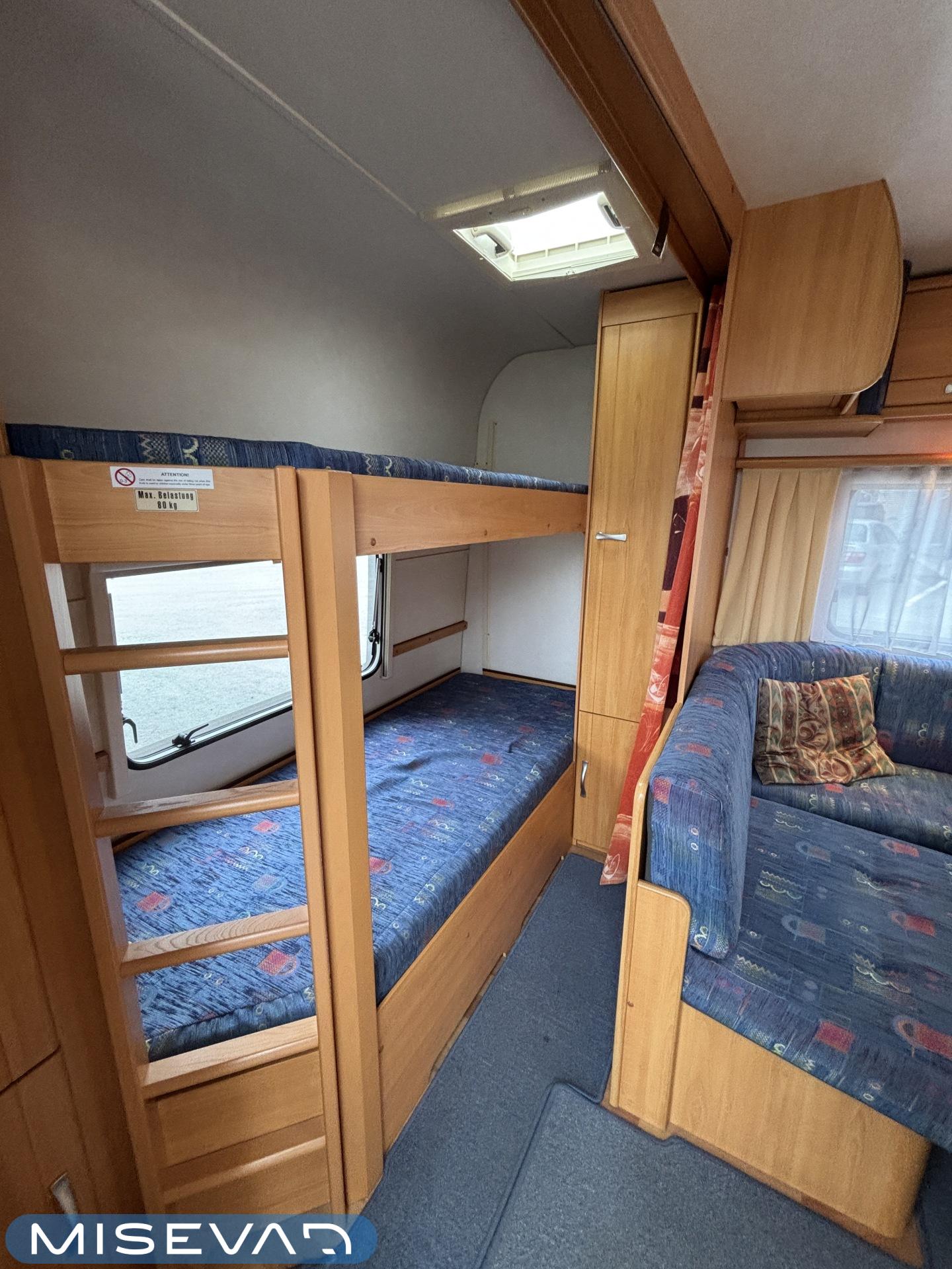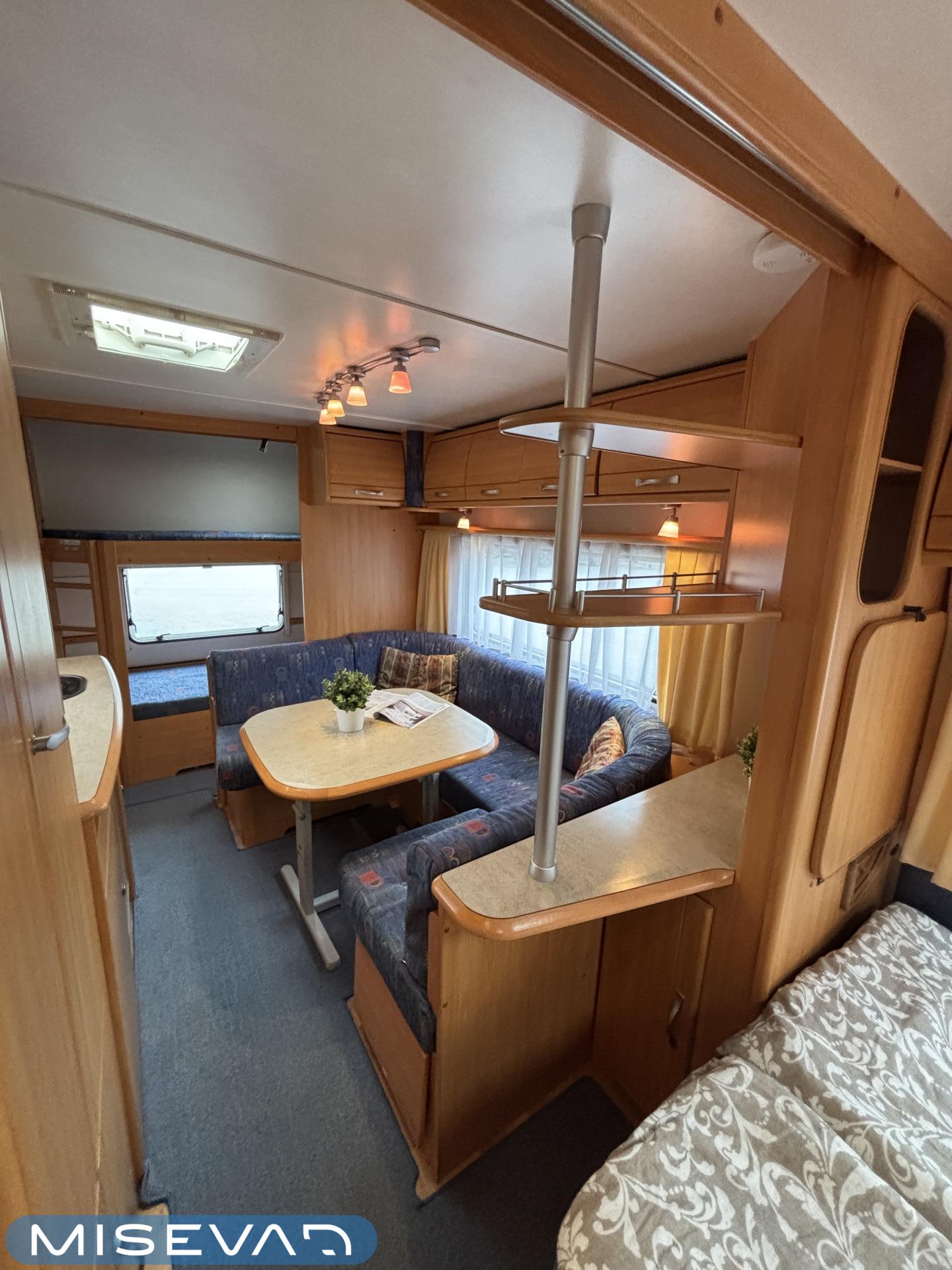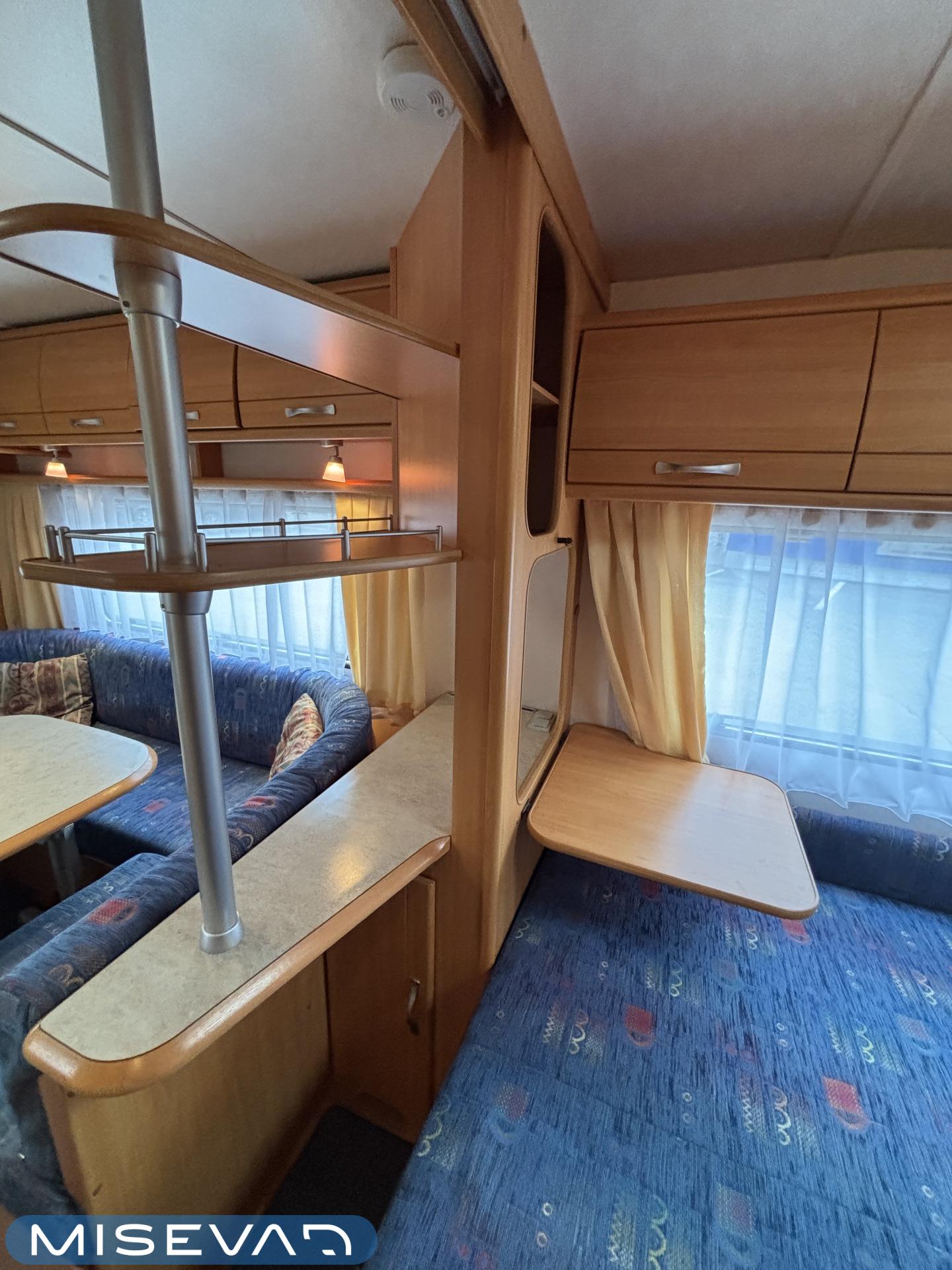 Jääkaappi, Kasetti WC, Kasettiverhot, Kattoluukku, Liesi, Lämminvesiboileri, Pakastelokero, Parivuode, Pesuallas, Sähköpatruuna, Trumatic, Tukijalat, Kesärenkaat, kwh-mittari, Asuinosan hyttysovi/verho, jenkkijääkaappi