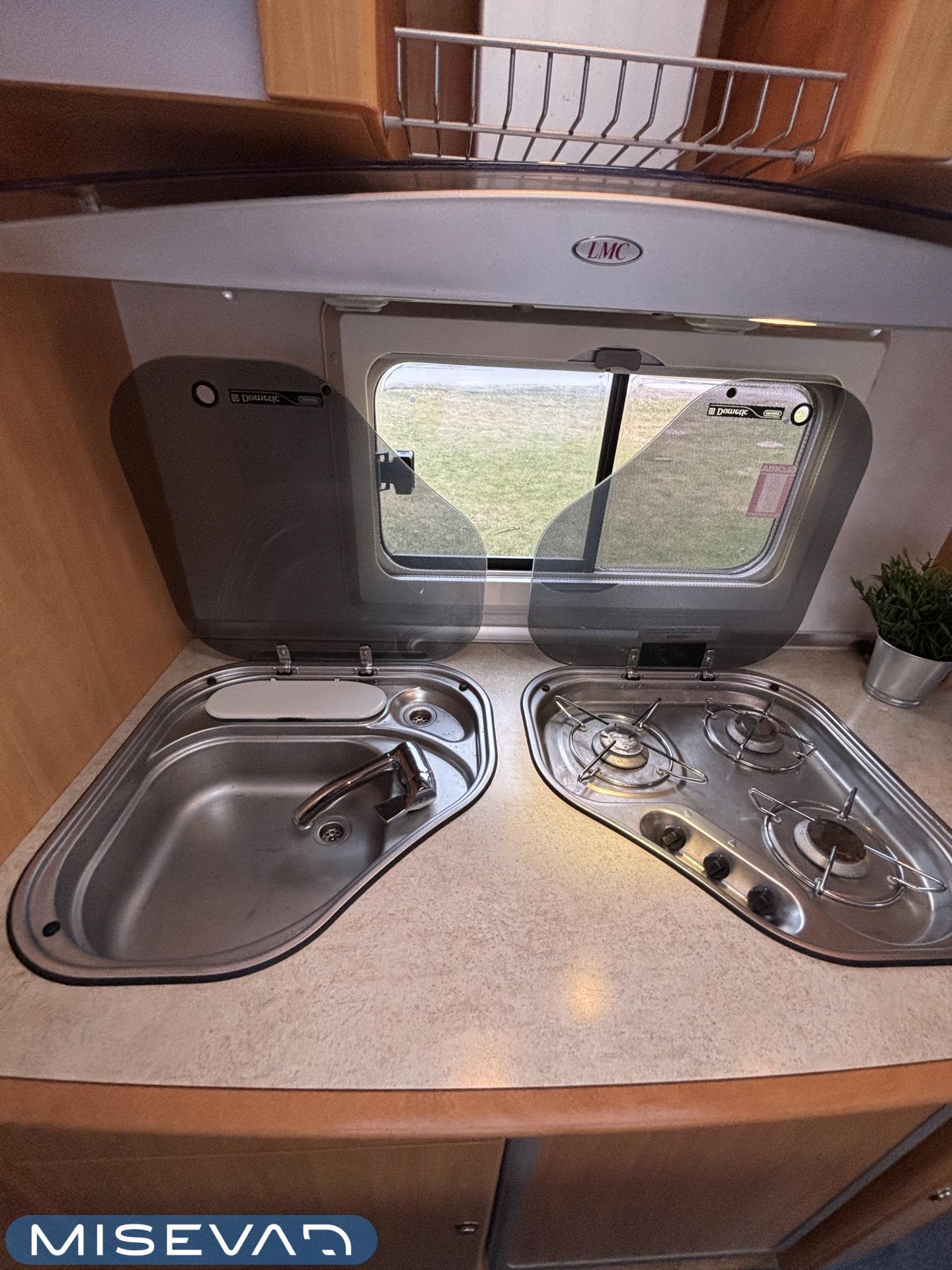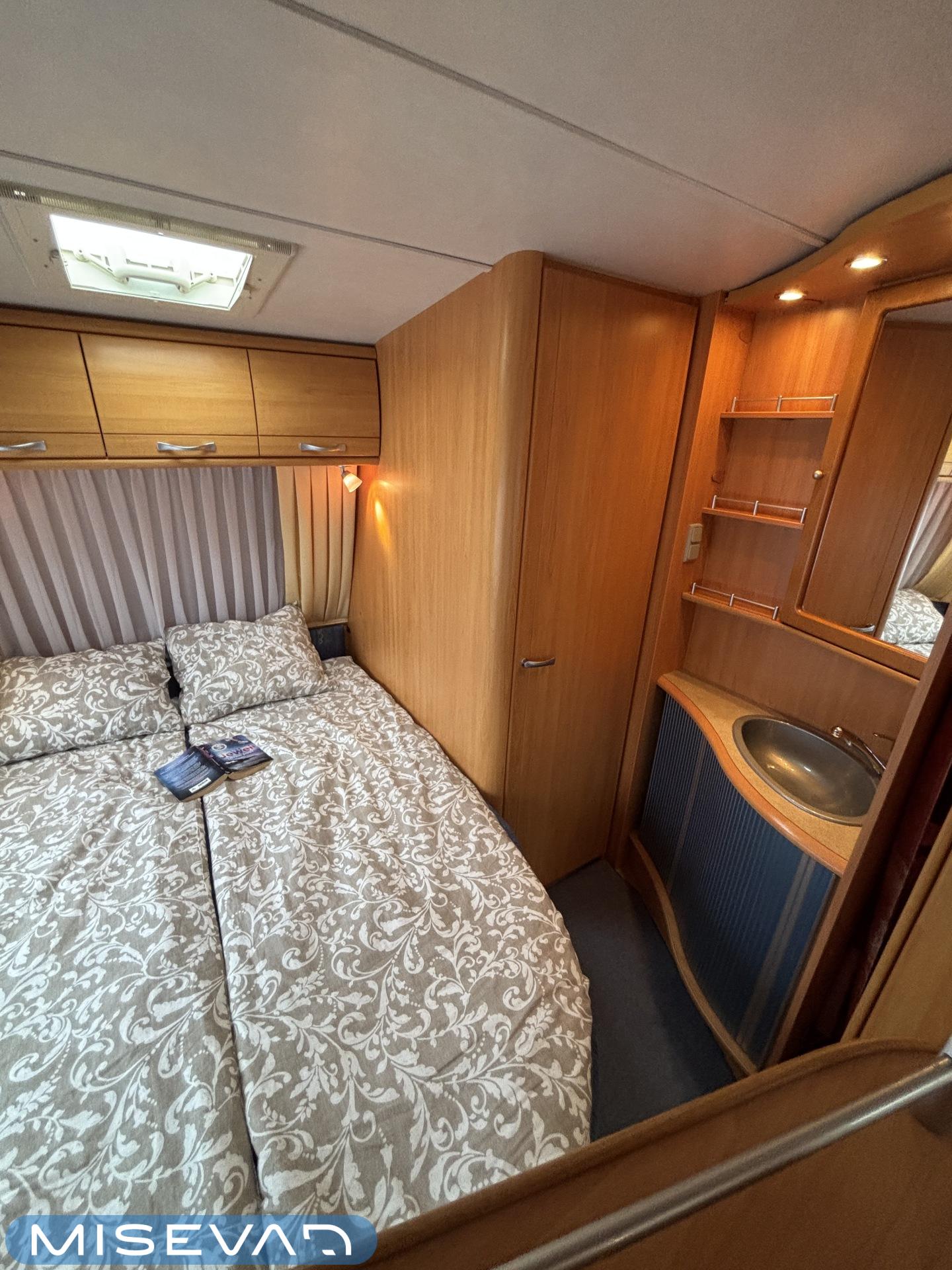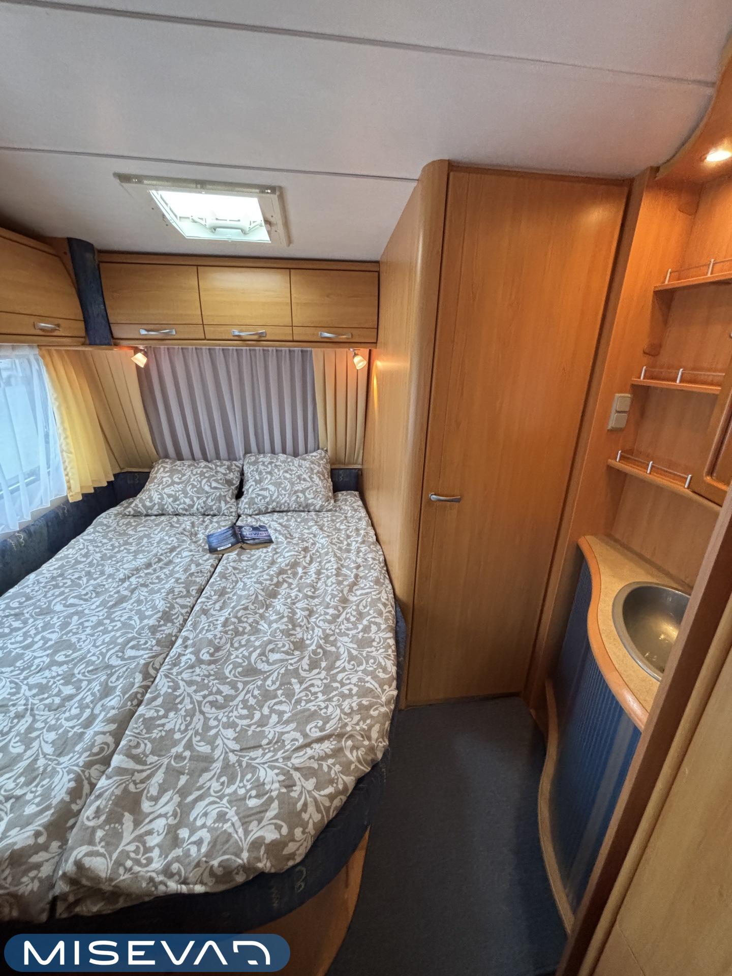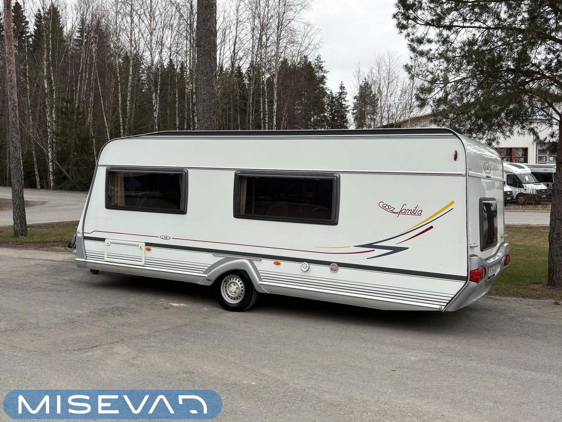 Jääkaappi, Kasetti WC, Kasettiverhot, Kattoluukku, Liesi, Lämminvesiboileri, Pakastelokero, Parivuode, Pesuallas, Sähköpatruuna, Trumatic, Tukijalat, Kesärenkaat, kwh-mittari, Asuinosan hyttysovi/verho, jenkkijääkaappi