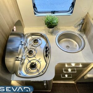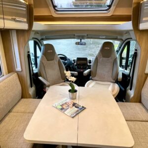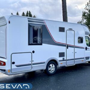 Kahdet renkaat, ABS-jarrut, Airbag, Ajotietokone, Huoltokirja, Trumatic, Sähköpatruuna, Lattialämmitys, Lattialämmitys (sähkö), Ilmastointi ajotilassa, TV-antenni tai lautasantenni, Radio, Vakionopeudensäädin, Webasto/Eber, Saarekesänky, Alas laskettava sänky, Jääkaappi, Kasetti WC, Kasettiverhot, Kattoluukku, Liesi, Lämminvesiboileri, Ohjaustehostin, Pakastelokero, Parivuode, Pesuallas, Suihku, Sähkökäyttöiset ikkunat