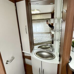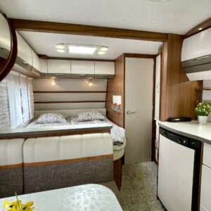 Trumatic, Sähköpatruuna, Lattialämmitys (sähkö), Liesi, Kasetti WC, Kasettiverhot, Aurinkopaneeli, Pesuallas, Pakastelokero, Parivuode, Kattoluukku, Jääkaappi