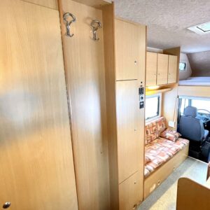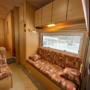 Jääkaappi, Kasetti WC, Keskuslämmitys, Liesi, Lämminvesiboileri, Markiisi, Ohjaustehostin, Pakastelokero, Parivuode, Pesuallas, Pyöräteline, Radio, Suihku, Sähkörappu, Trumatic