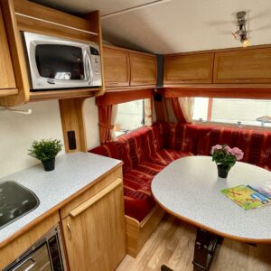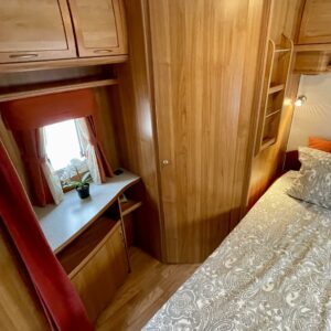 Alde, Erikoisvanteet, Jääkaappi, Kaasu-uuni, Kasetti WC, Kasettiverhot, Kattoluukku, Liesi, Lämminvesiboileri, Mikroaaltouuni, Nestekiertolämmitys, Pakastelokero, Parivuode, Pesuallas, Suihku, Sähköpatruuna, Tukijalat, Lattialämmitys (nestekierto), kwh-mittari, sähkön ulosotto