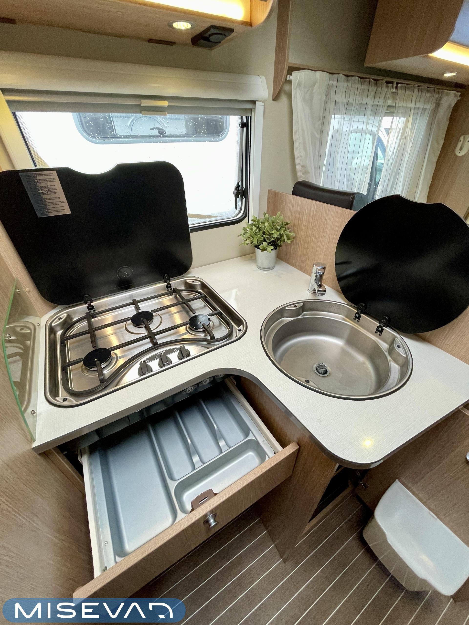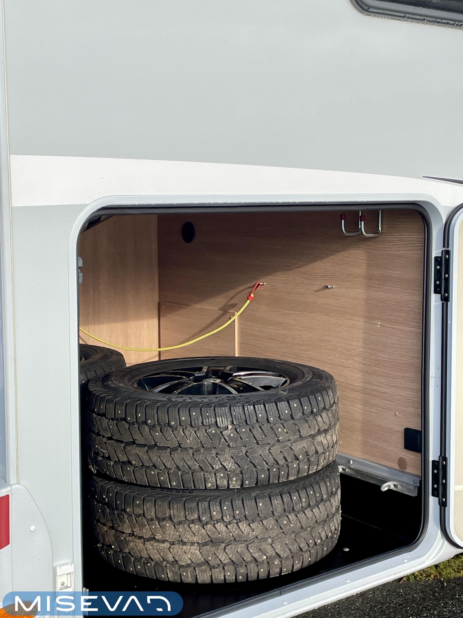 Truma, Sähköpatruuna, Airbag, Aurinkopaneeli, Erikoisvanteet, Eristetty harmaavesisäiliö, Jääkaappi, Kahdet renkaat, Kasetti WC, Kasettiverhot, Kattoluukku, Käynnistyksenesto, Lattialämmitys, Liesi, Lämminvesiboileri, Markiisi, Ohjaustehostin, Pakastelokero, Pesuallas, Pysäköintikamera, Pyöräteline, Radio, Suihku, Sähkökäyttöiset ikkunat, Sähköpeilit, Sähkörappu, TV-antenni tai lautasantenni, Tukijalat, Turbo, Vakionopeudensäädin, Vetokoukku, Lattialämmitys (sähkö), Ilmastointi (ohjaamo), Tupla-akut, laskuvuode, jenkkijääkaappi, kaasun ulosotto, televisio, Asuinosan hyttysovi/verho