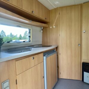 Jääkaappi, Kasetti WC, Kattoluukku, Liesi, Pesuallas, Trumatic, Tukijalat, Takakeittiö