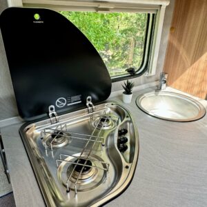 Jääkaappi, Kasetti WC, Kasettiverhot, Kattoluukku, Liesi, Lämminvesiboileri, Pakastelokero, Parivuode, Pesuallas, Trumatic, Tukijalat