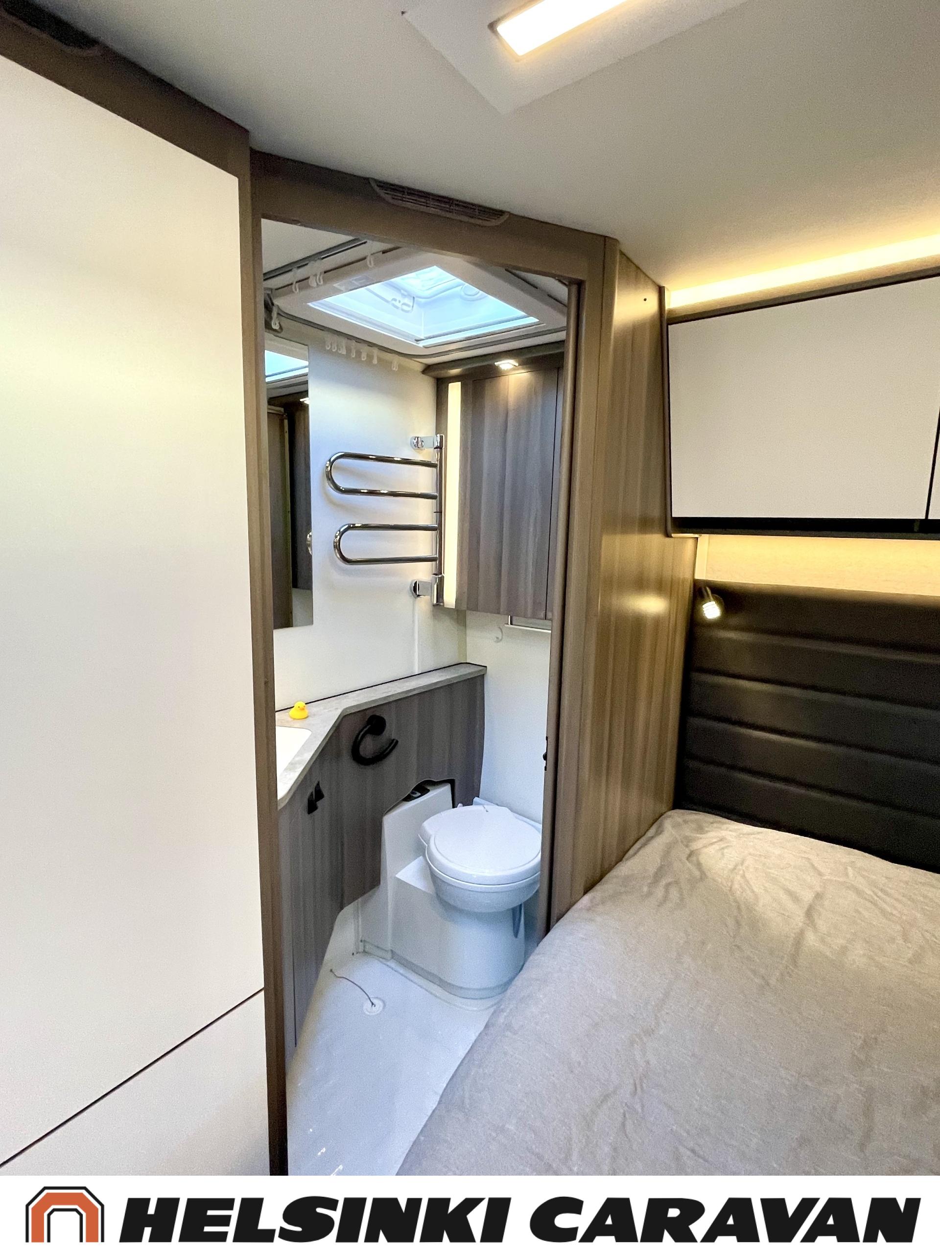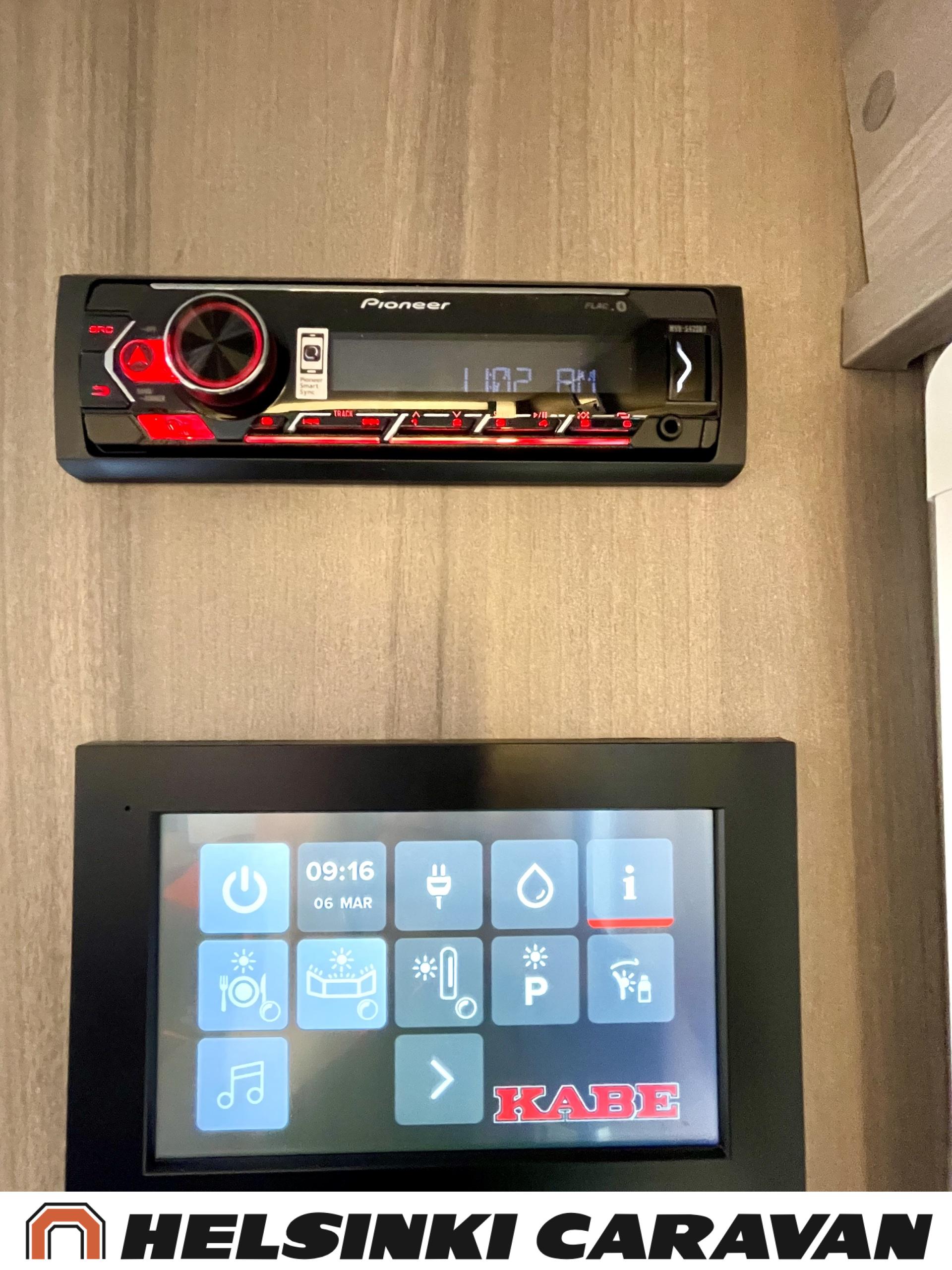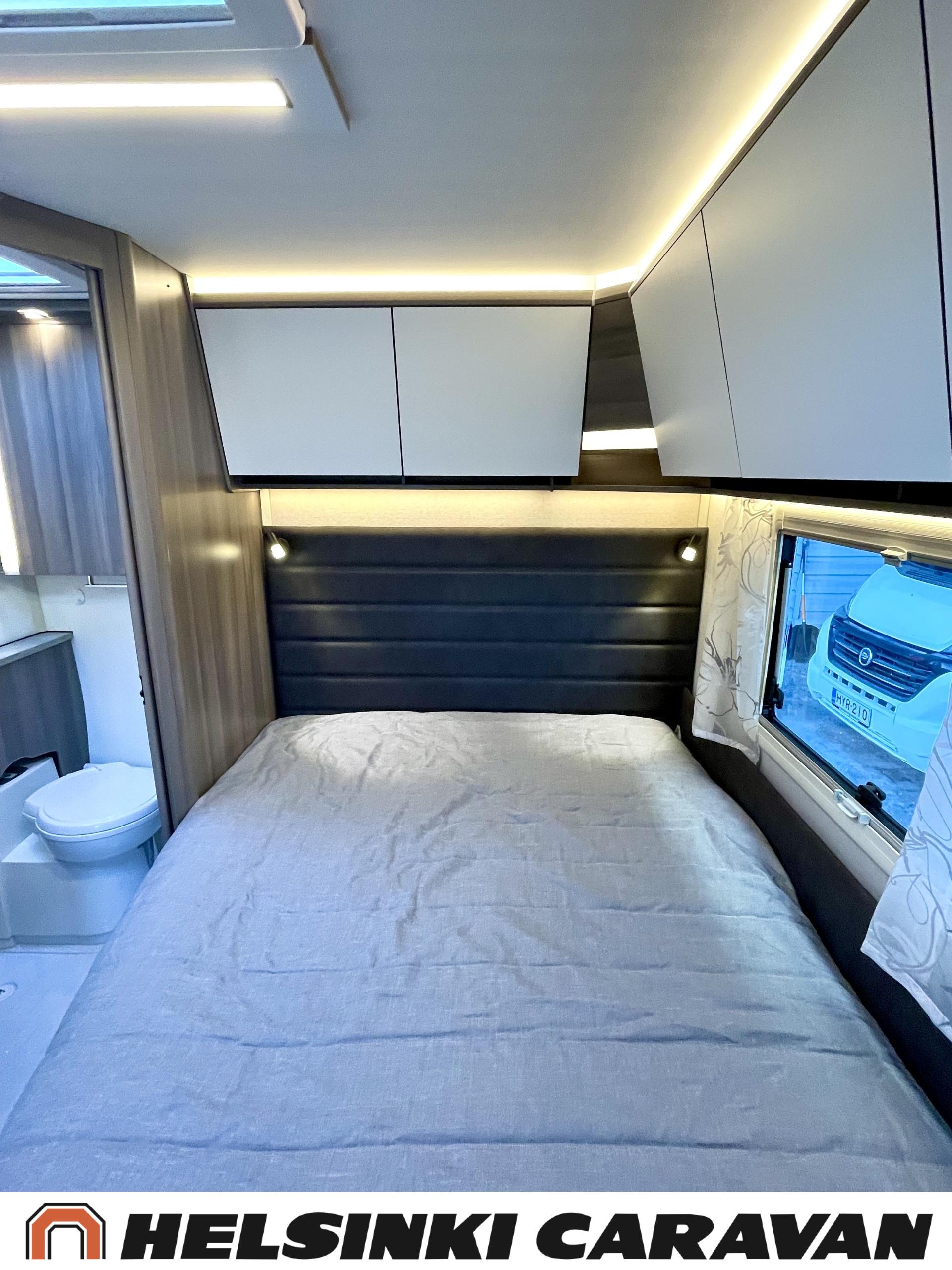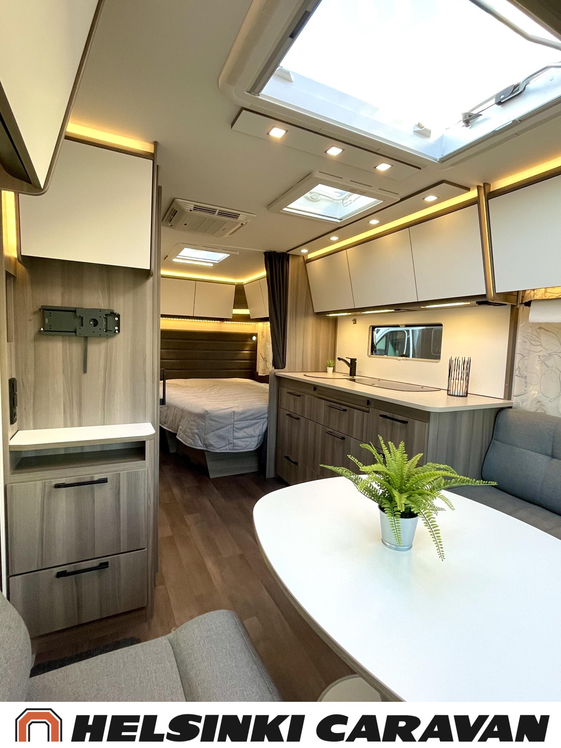 Alde, Erillisvuoteet, Jääkaappi, Pakastelokero, Kasetti WC, Kasettiverhot, Kattoluukku, Liesi, Lämminvesiboileri, Nestekiertolämmitys, Pesuallas, Pyöräteline, Suihku, Sähköpatruuna, Tukijalat, Lattialämmitys (sähkö), Markiisi, kwh-mittari, 1 x kevytmet.vanteet, Kesärenkaat, Polkupyöräteline, Aurinkopaneeli