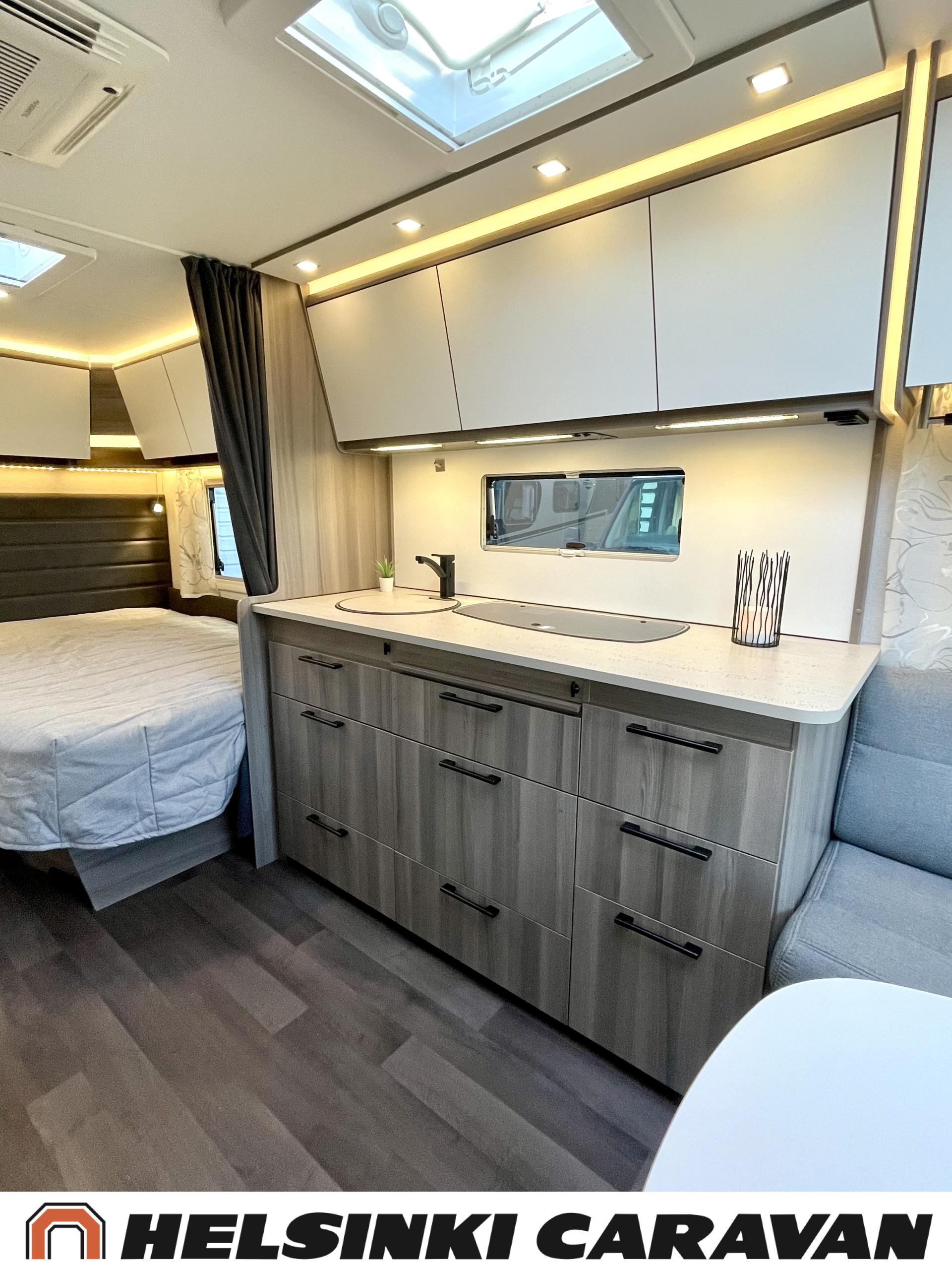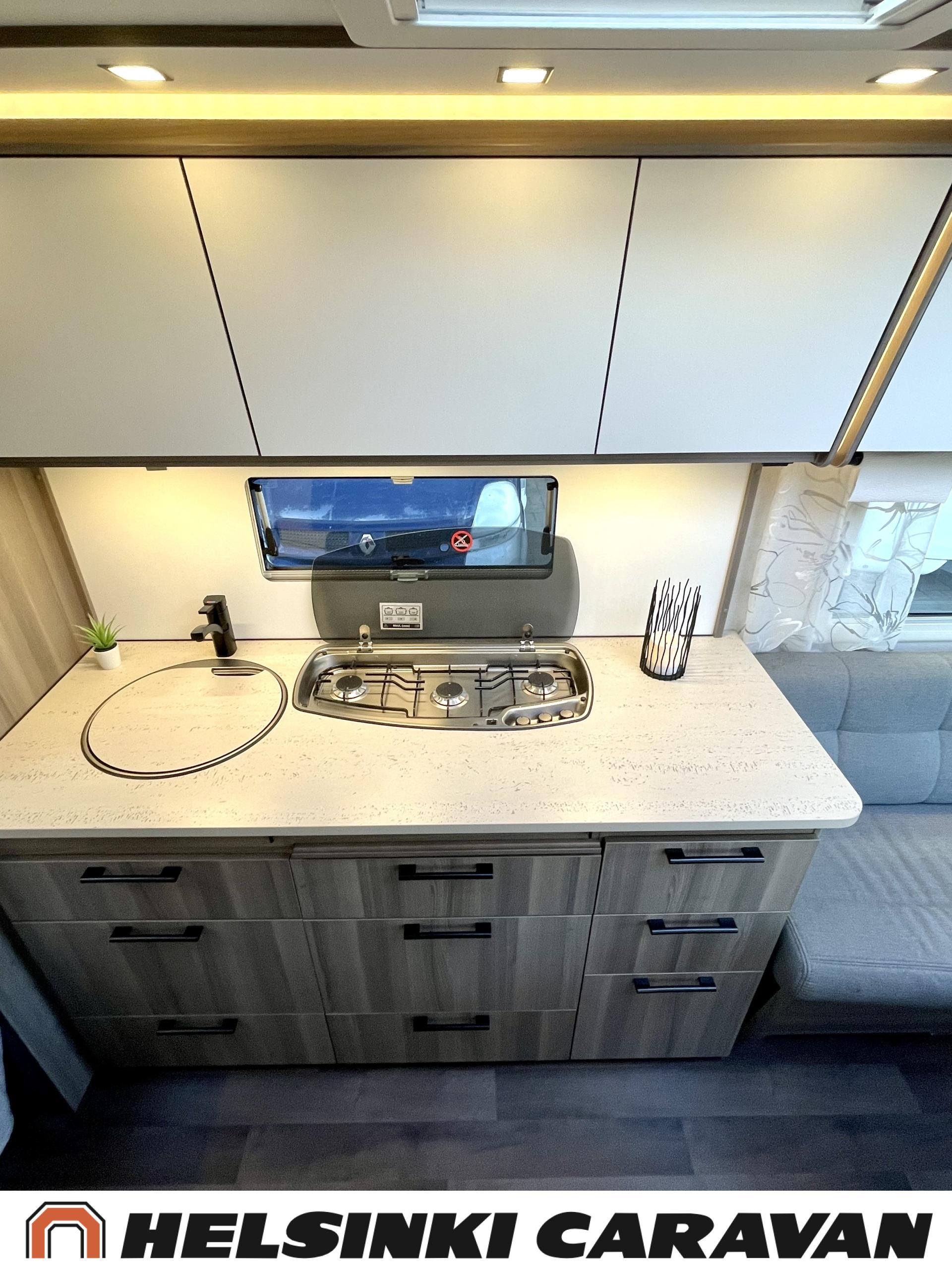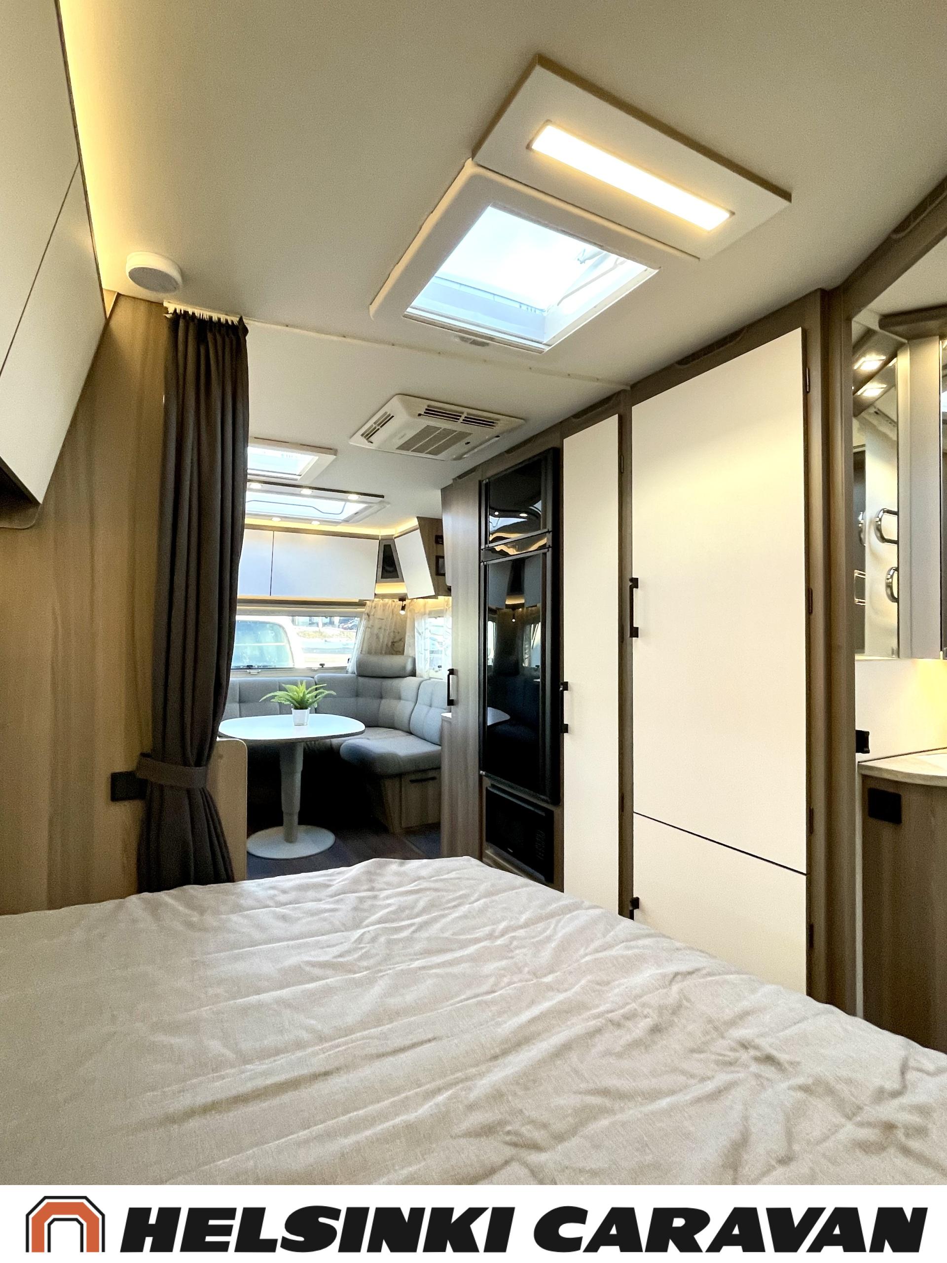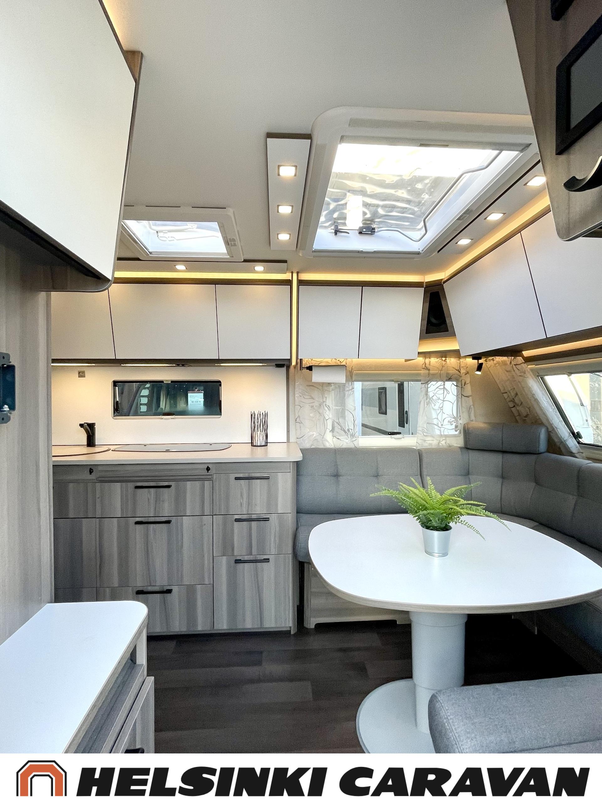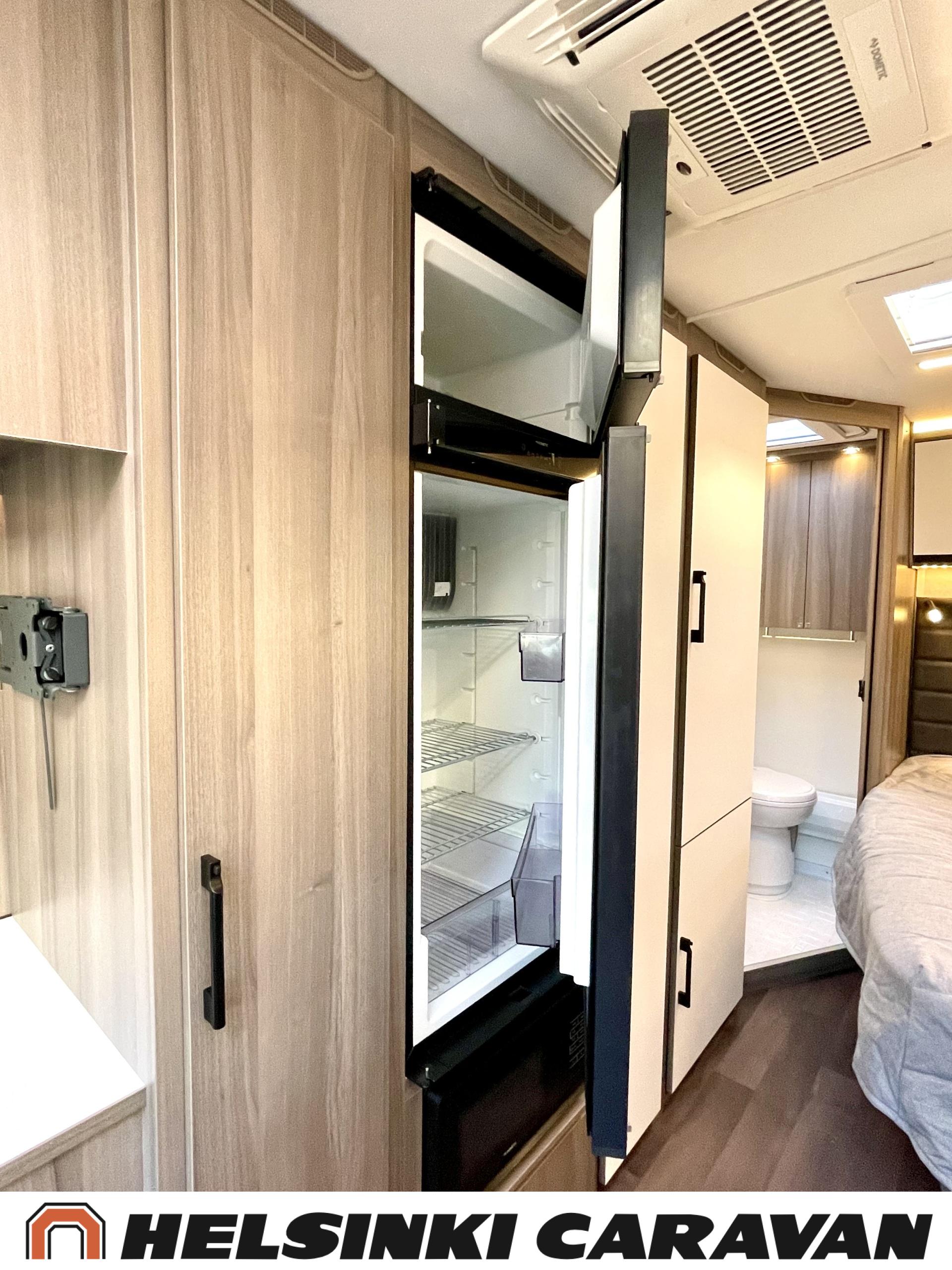 Alde, Erillisvuoteet, Jääkaappi, Pakastelokero, Kasetti WC, Kasettiverhot, Kattoluukku, Liesi, Lämminvesiboileri, Nestekiertolämmitys, Pesuallas, Pyöräteline, Suihku, Sähköpatruuna, Tukijalat, Lattialämmitys (sähkö), Markiisi, kwh-mittari, 1 x kevytmet.vanteet, Kesärenkaat, Polkupyöräteline, Aurinkopaneeli