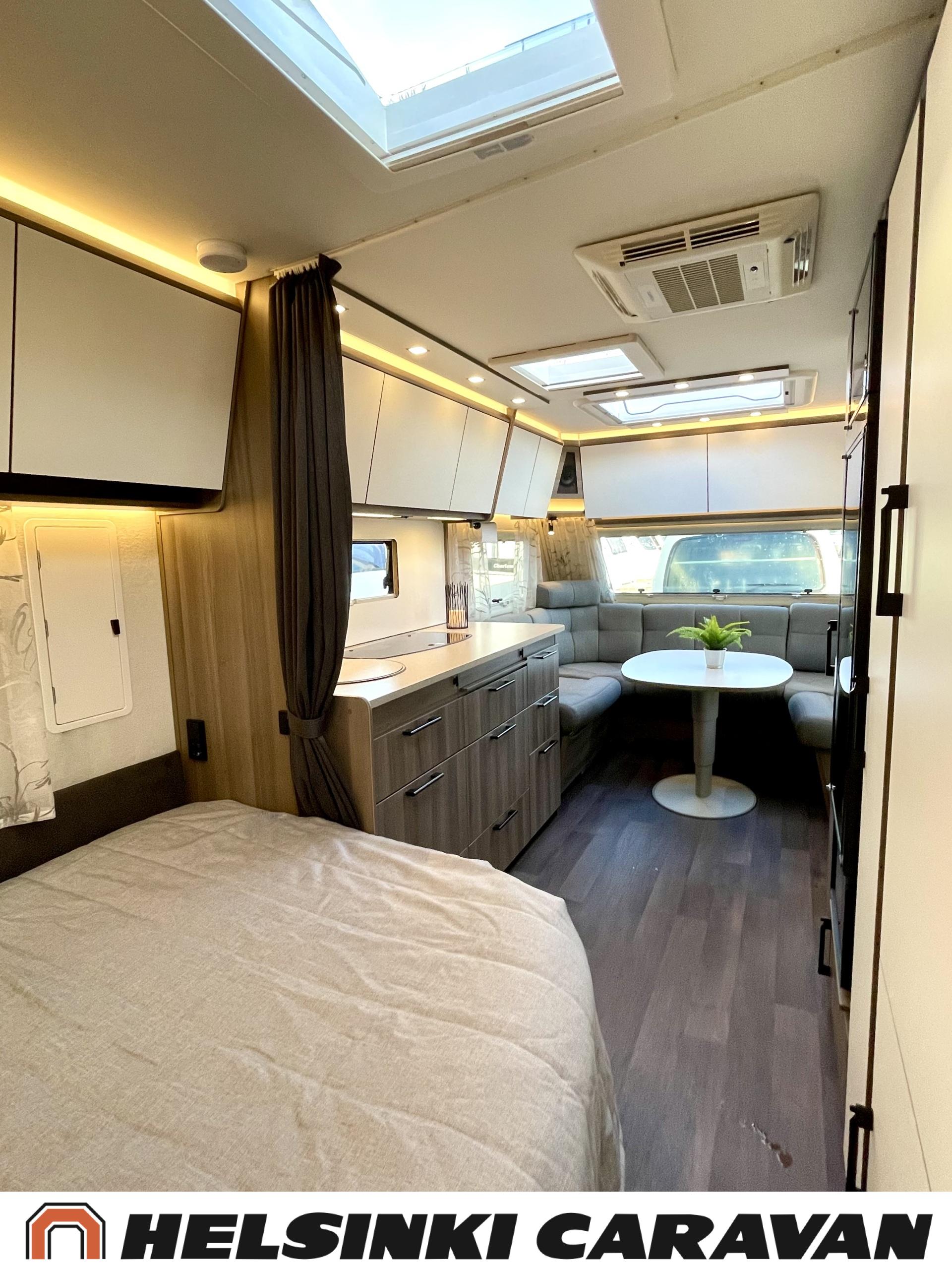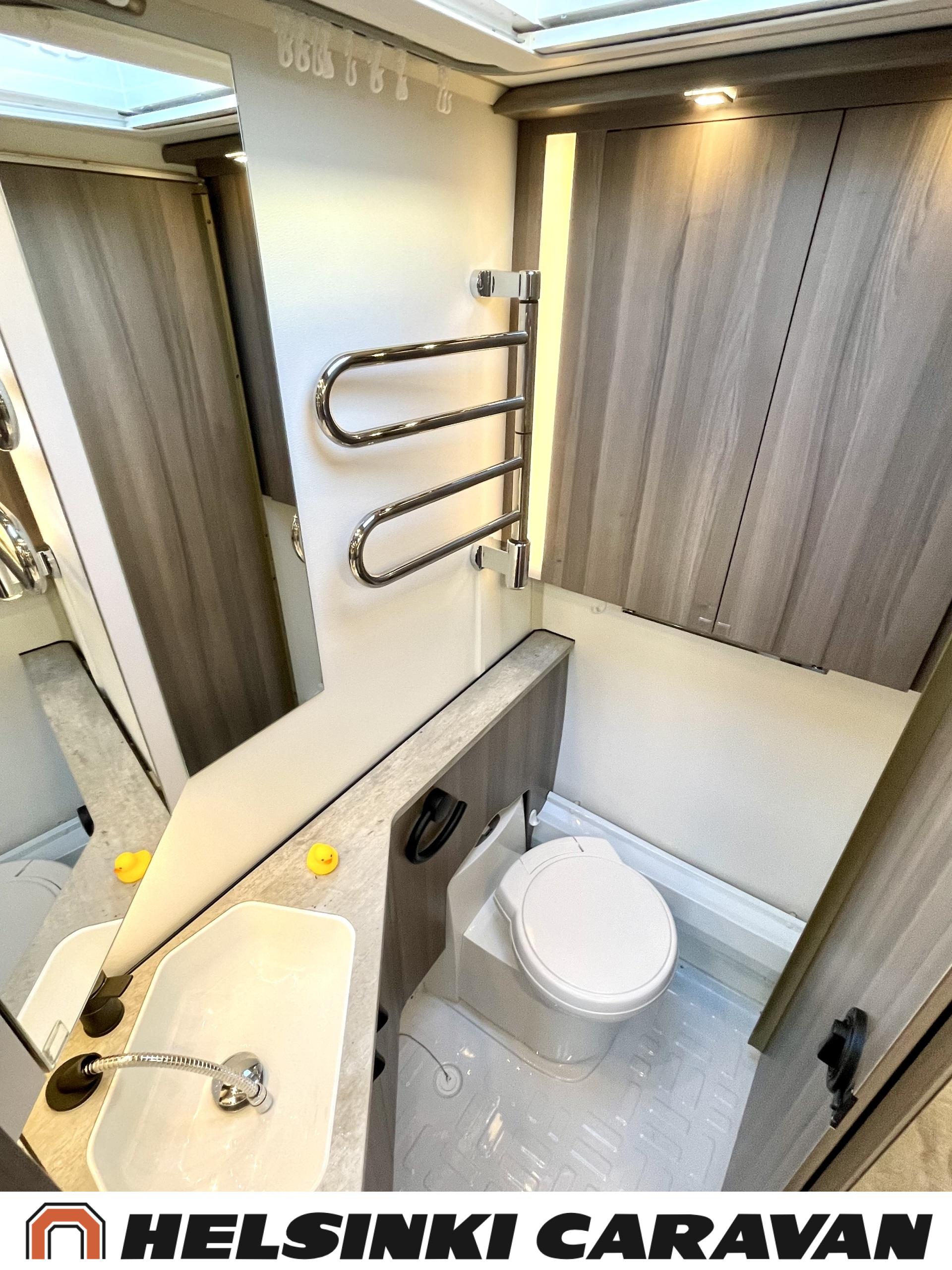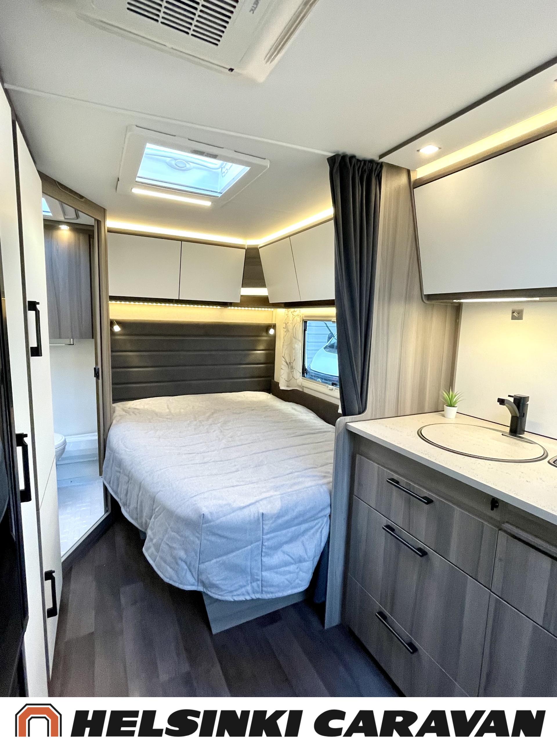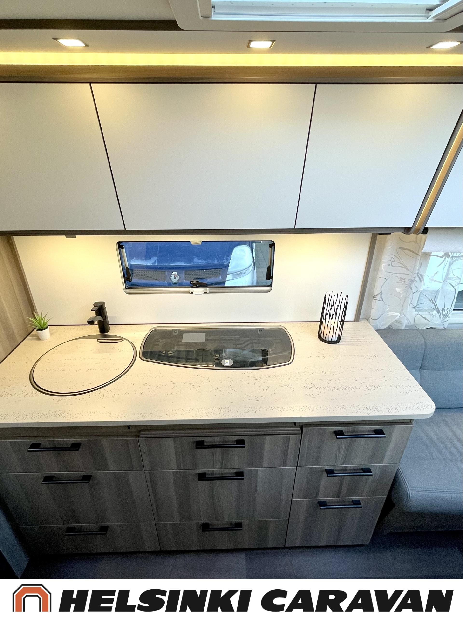 Alde, Erillisvuoteet, Jääkaappi, Pakastelokero, Kasetti WC, Kasettiverhot, Kattoluukku, Liesi, Lämminvesiboileri, Nestekiertolämmitys, Pesuallas, Pyöräteline, Suihku, Sähköpatruuna, Tukijalat, Lattialämmitys (sähkö), Markiisi, kwh-mittari, 1 x kevytmet.vanteet, Kesärenkaat, Polkupyöräteline, Aurinkopaneeli