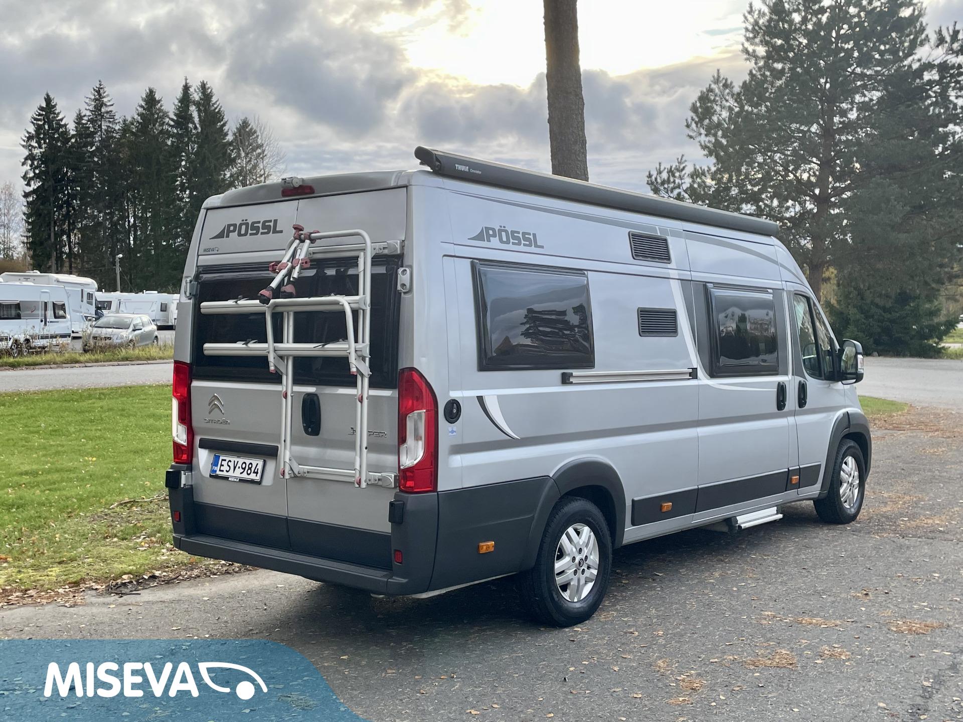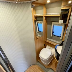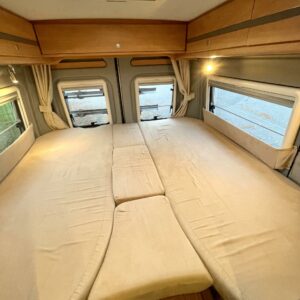 Solar panel, Special wheels, Separate beds, Cab air conditioning, Air conditioning man., Fridge, Cassette WC, Cassette blinds, Roof hatch, Central locking with remote, Central heating, Stove, Hot water boiler, Sun shade, Freezer compartment, Double bed, Parking sensor/camera, Bicycle rack, Stereo system, Electric windows, Electric steps, Trumatic, Cruise control