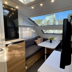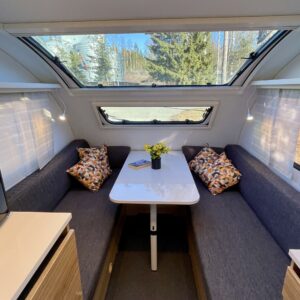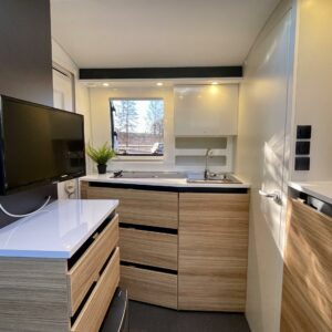 Electric heating cartridge, TV-antenni tai lautasantenni, Rear kitchen, Trumatic, Support legs, Sink, Double bed, Cassette blinds, Roof hatch, Stove, Hot water boiler, Cassette WC, Service history, Bluetooth, Special wheels, televisio, televisioteline, Asuinosan hyttysovi/verho, Lattialämmitys (sähkö), Freezer compartment, Fridge