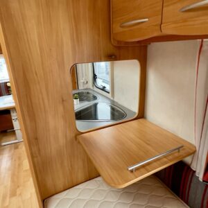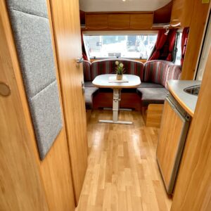 Alde, CD-soitin, Special wheels, Fridge, Cassette WC, Cassette blinds, Roof hatch, Floor heating, Stove, Hot water boiler, Sun shade, Fluid circulation heating, Freezer compartment, Double bed, Sink, Electric heating cartridge, TV-antenni tai lautasantenni, Support legs, Lattialämmitys (sähkö), kwh-mittari