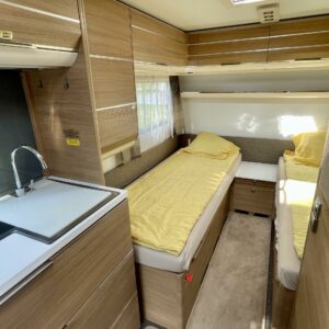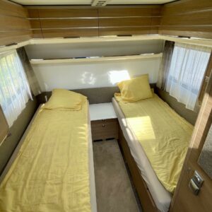 Alde, Separate beds, Fridge, Cassette WC, Roof hatch, Stove, Hot water boiler, Sun shade, Fluid circulation heating, Freezer compartment, Bicycle rack, Shower