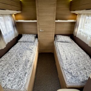 Alde, Separate beds, Cassette blinds, Cassette WC, Support legs, Stove, Hot water boiler, Roof hatch, Floor heating, Fridge, Fluid circulation heating, Freezer compartment, Sink, Electric heating cartridge, Shower, TV-antenni tai lautasantenni, Solar panel, Radio