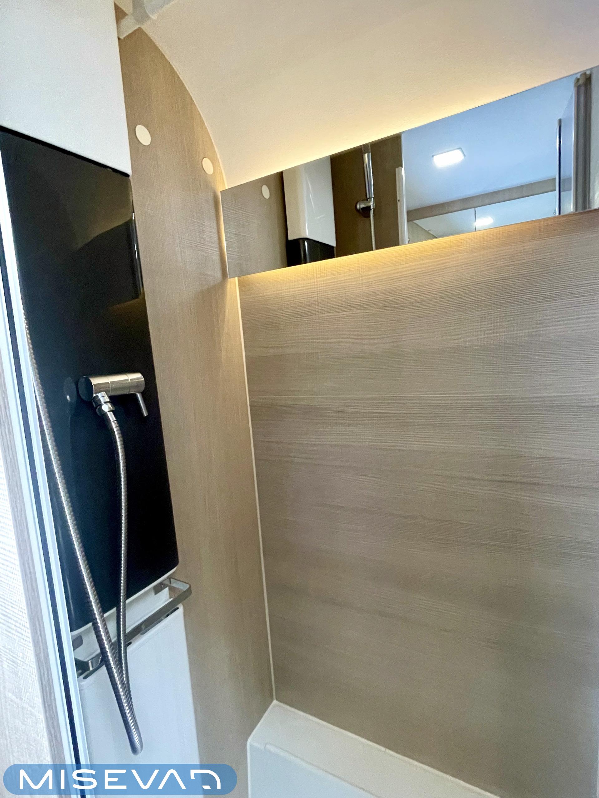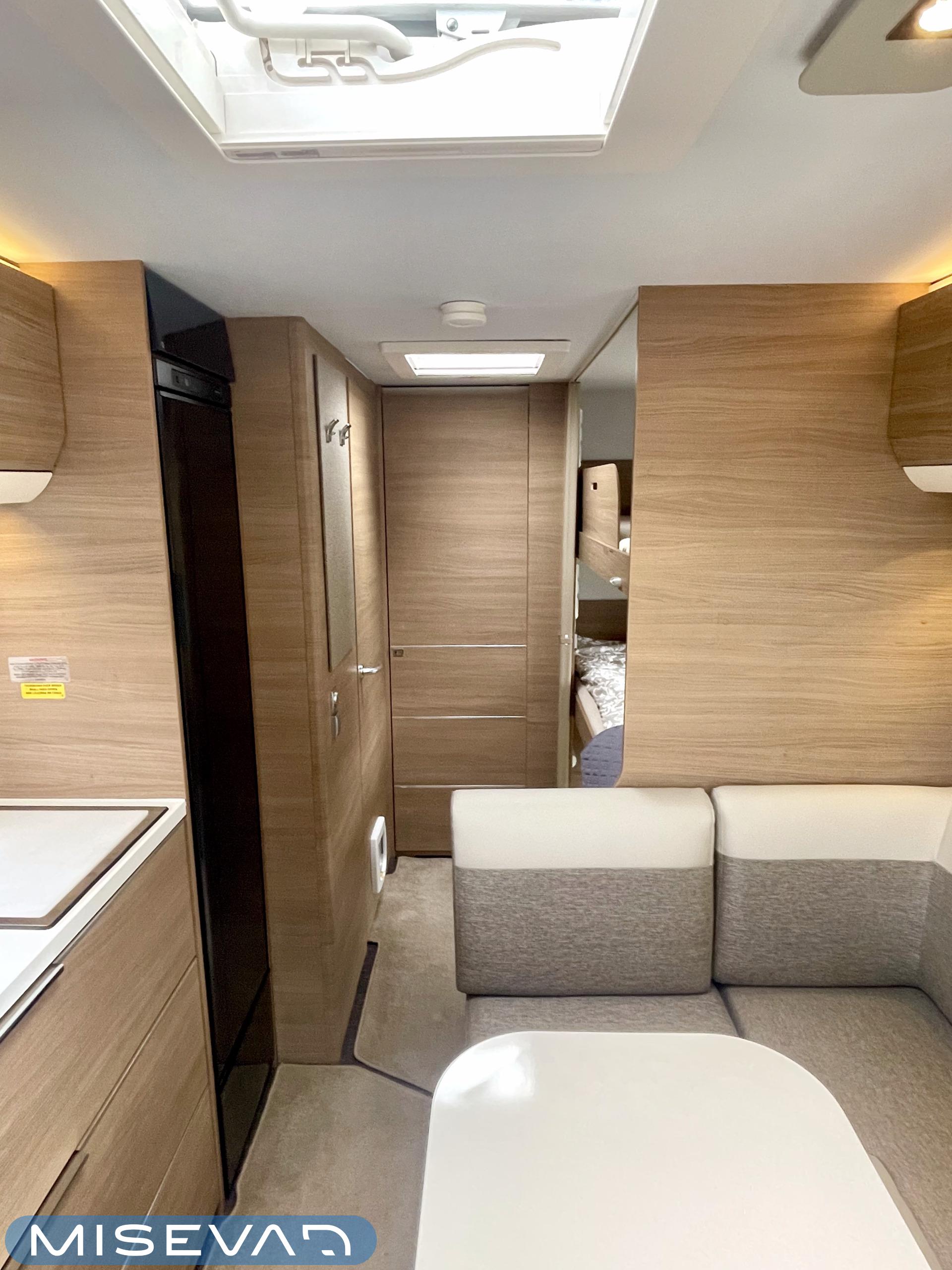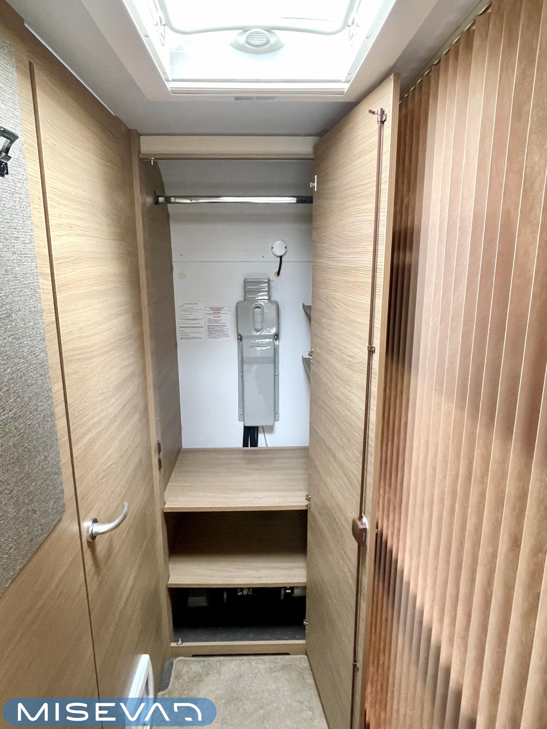 Alde, Electric heating cartridge, Floor heating, Lattialämmitys (sähkö), Fridge, Cassette blinds, Cassette WC, Roof hatch, Bunk bed, Bicycle rack, Stove, liesituuletin, Radio, Support legs