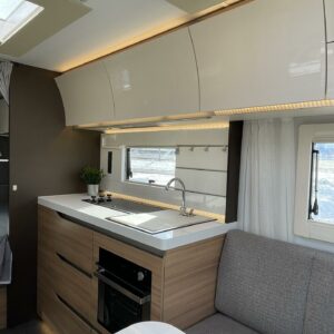 Alde, Insulated grey water tank, Fridge, Gas oven, Cassette WC, Cassette blinds, Roof hatch, Bunk bed, Floor heating, Stove, Hot water boiler, Sun shade, Microwave oven, Fluid circulation heating, Freezer compartment, Double bed, Sink, Shower, Electric heating cartridge, TV-antenni tai lautasantenni, Support legs, Lattialämmitys (nestekierto), kwh-mittari, jenkkijääkaappi, sähkön ulosotto, televisioteline, Asuinosan hyttysovi/verho