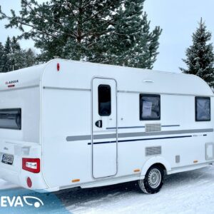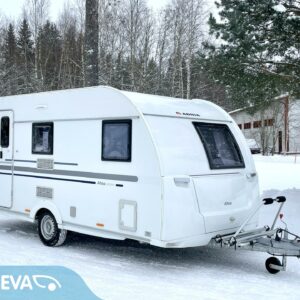 Cassette blinds, Cassette WC, Fridge, Roof hatch, Bunk bed, Floor heating, Stove, Hot water boiler, Sink, Freezer compartment, Double bed, Electric heating cartridge, Trumatic, Support legs, Bicycle rack