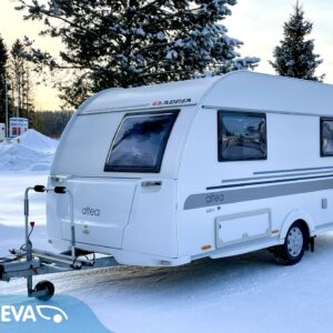 Cassette blinds, Cassette WC, Fridge, Roof hatch, Floor heating, Stove, Hot water boiler, Sun shade, Sink, Freezer compartment, Double bed, Electric heating cartridge, TV-antenni tai lautasantenni, Trumatic, Support legs, Passenger area carpets, Shower, Bicycle rack